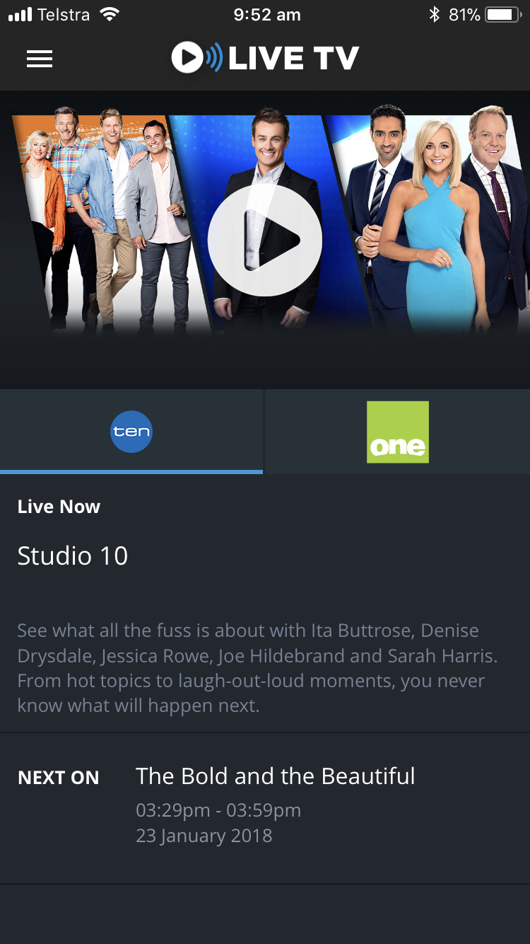 Ten have recently made some good improvements to the tenplay app, including a new navigation menu and live streaming functions