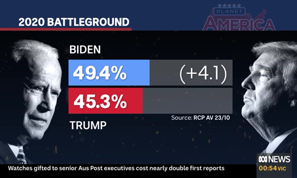Join Peter Overton and Charles Croucher for US Election Night 2020. With reporters in LA and on location with both candidates, we will have full coverage live from the US in what will be one of the most anticipated US elections in history.