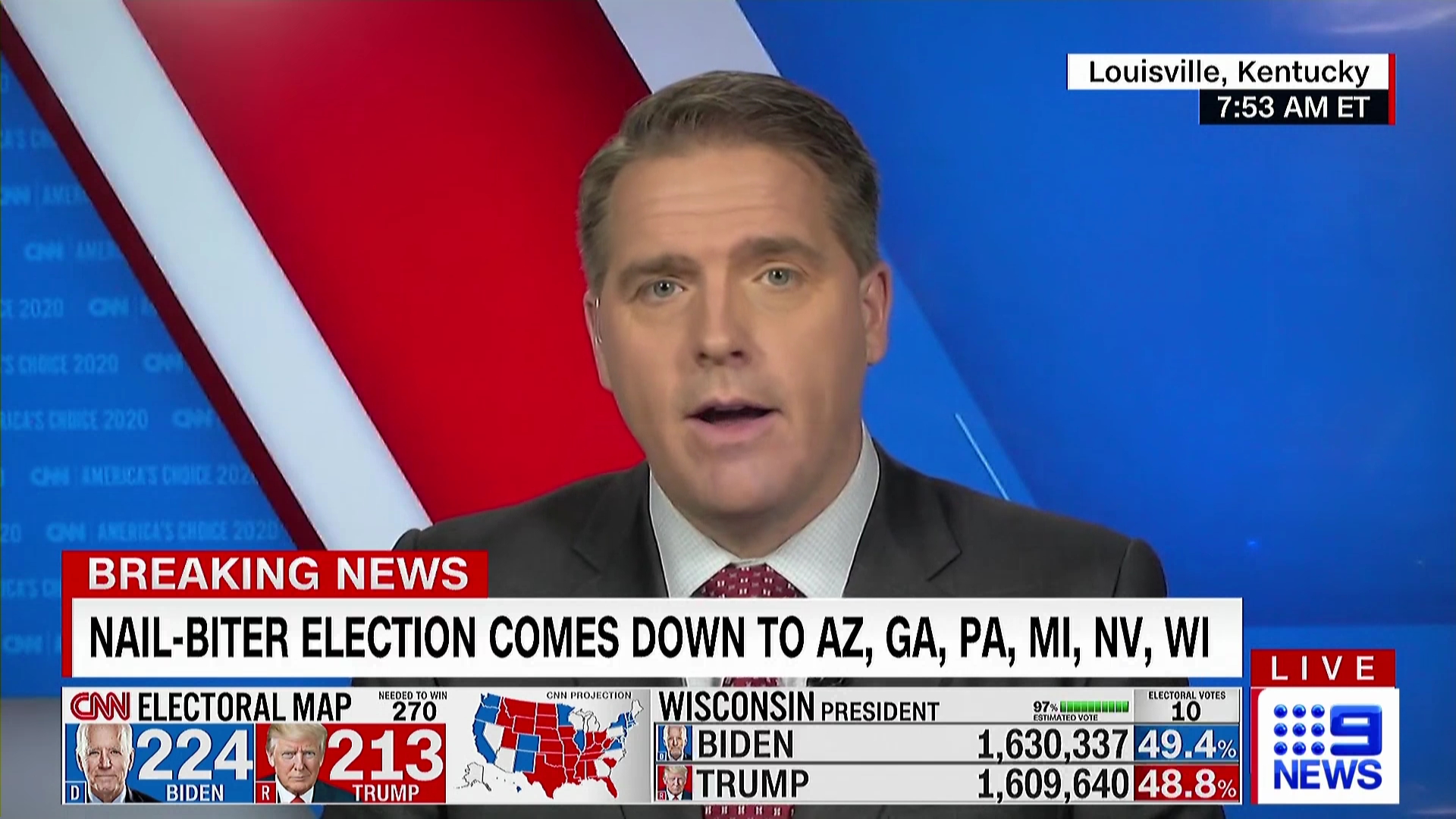 The graphic rotating between the CNN and 9 logos appears to be imposed by Nine ontop of the feed.