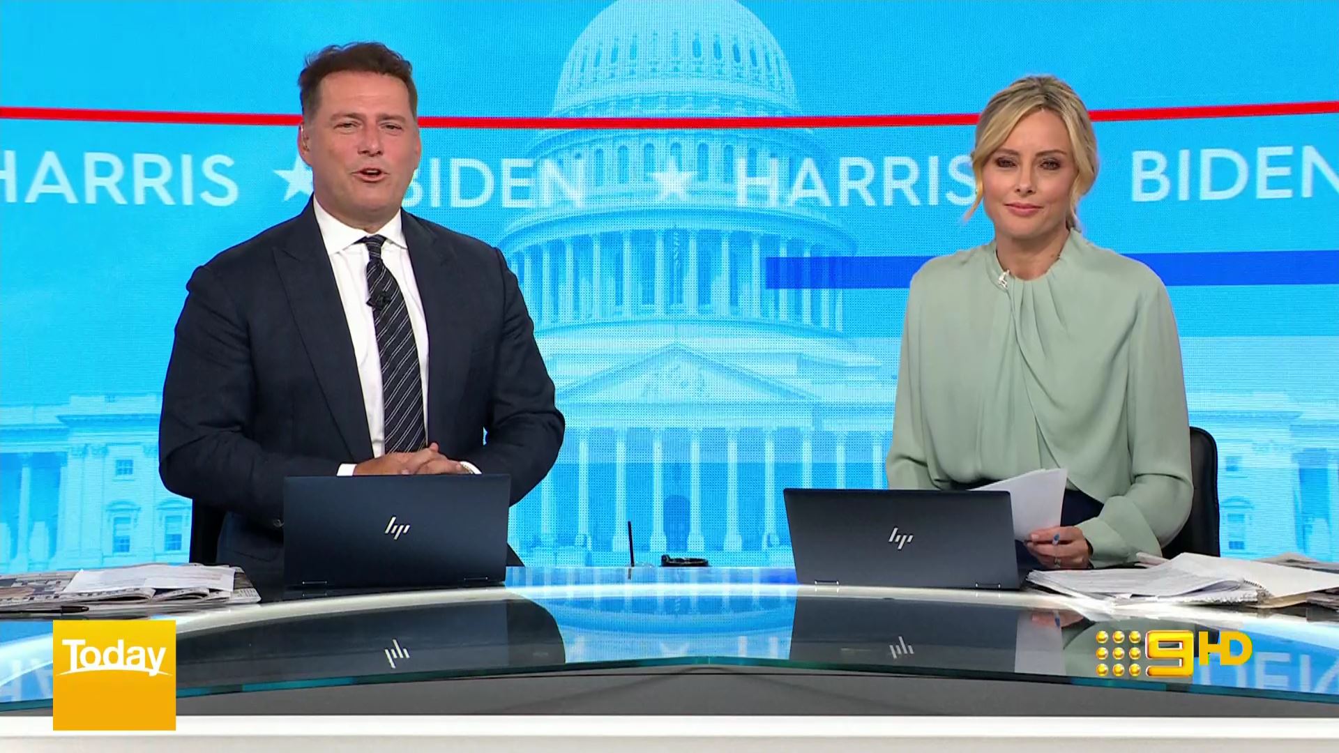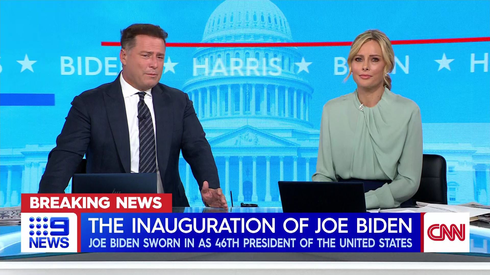 Karl and Ally are hosting the coverage on Nine, which is branded as Nine News until 5am when Today officially starts.