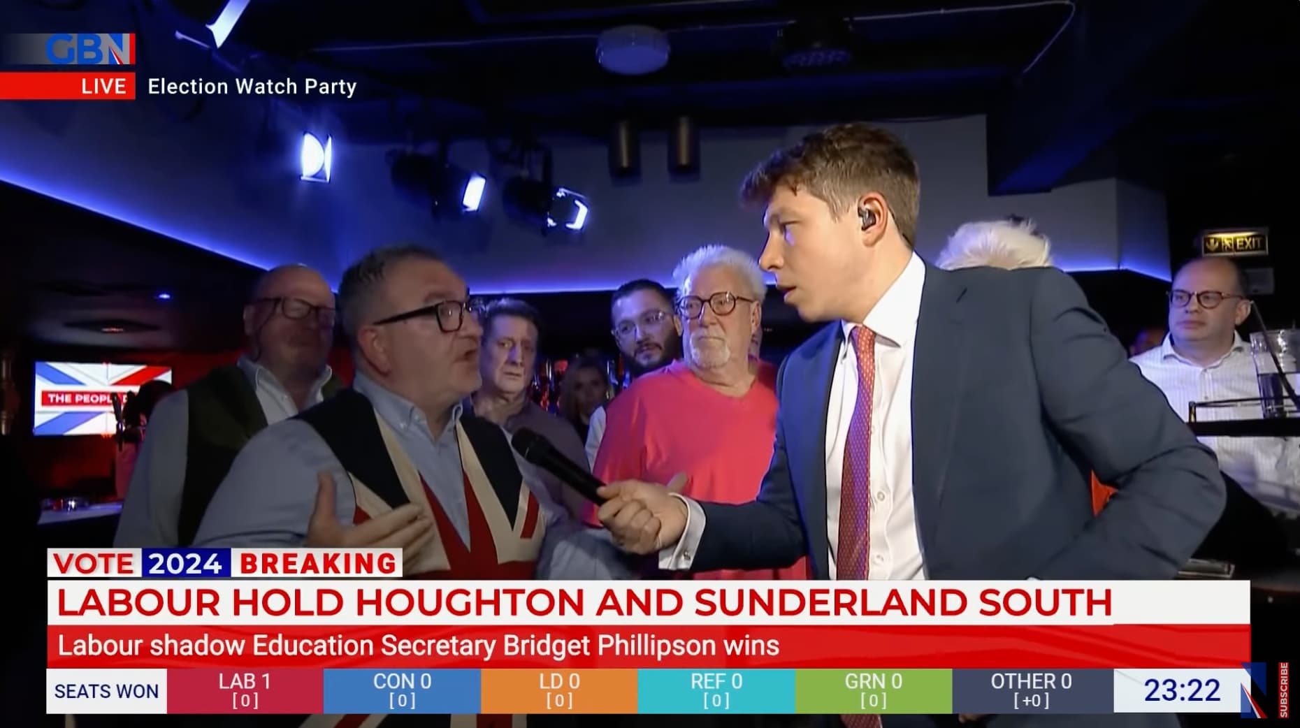 While all of the sets and graphics are always interesting, the highlight of UK election coverage for me every time is the declaration of the polls in each electorate as a bunch of very serious and solemn looking candidates are flanked by other candidates in outrageous costumes. And the media just having to roll with it as if there’s nothing at all strange going on before our eyes.