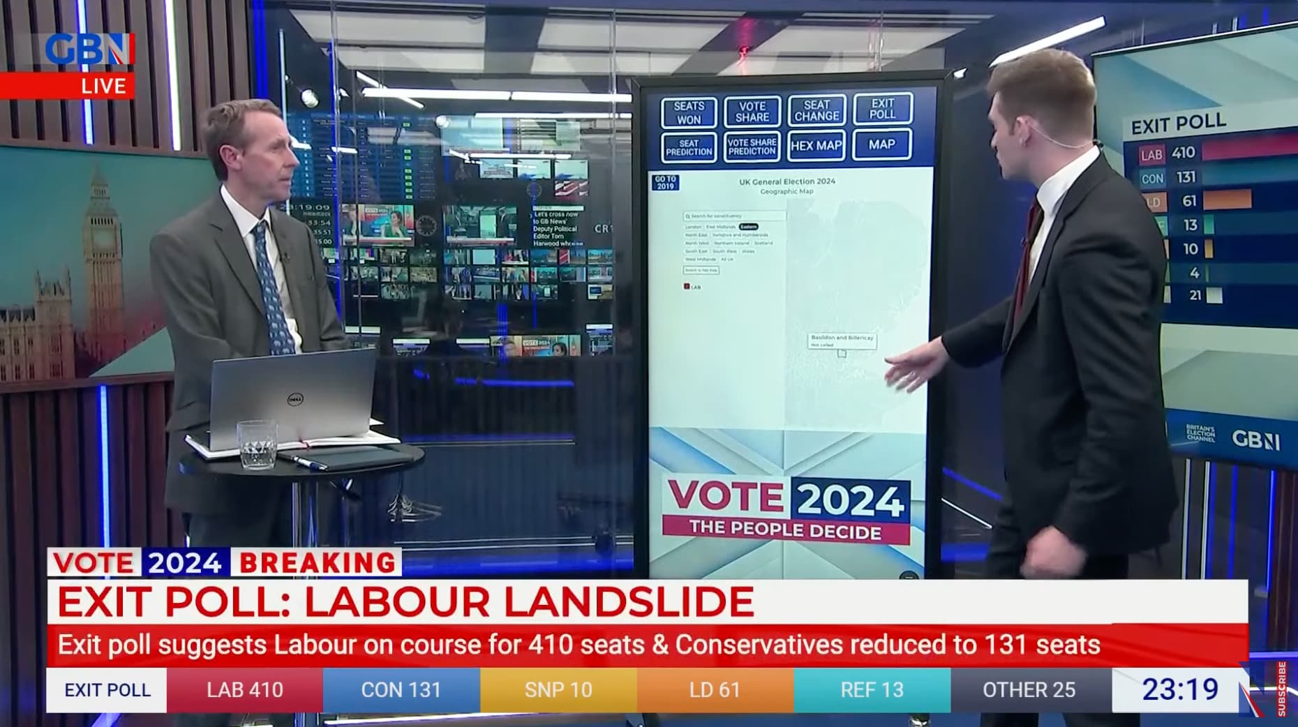 BBC underway now. Great use of AR Graphics for Exit Poll.