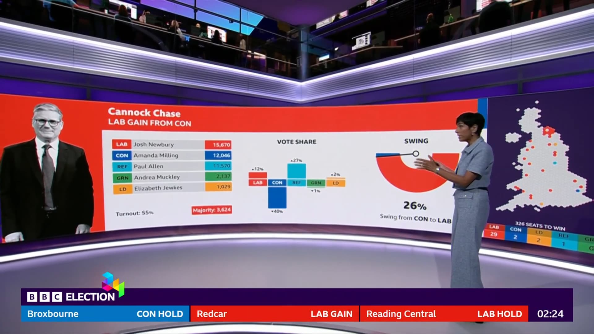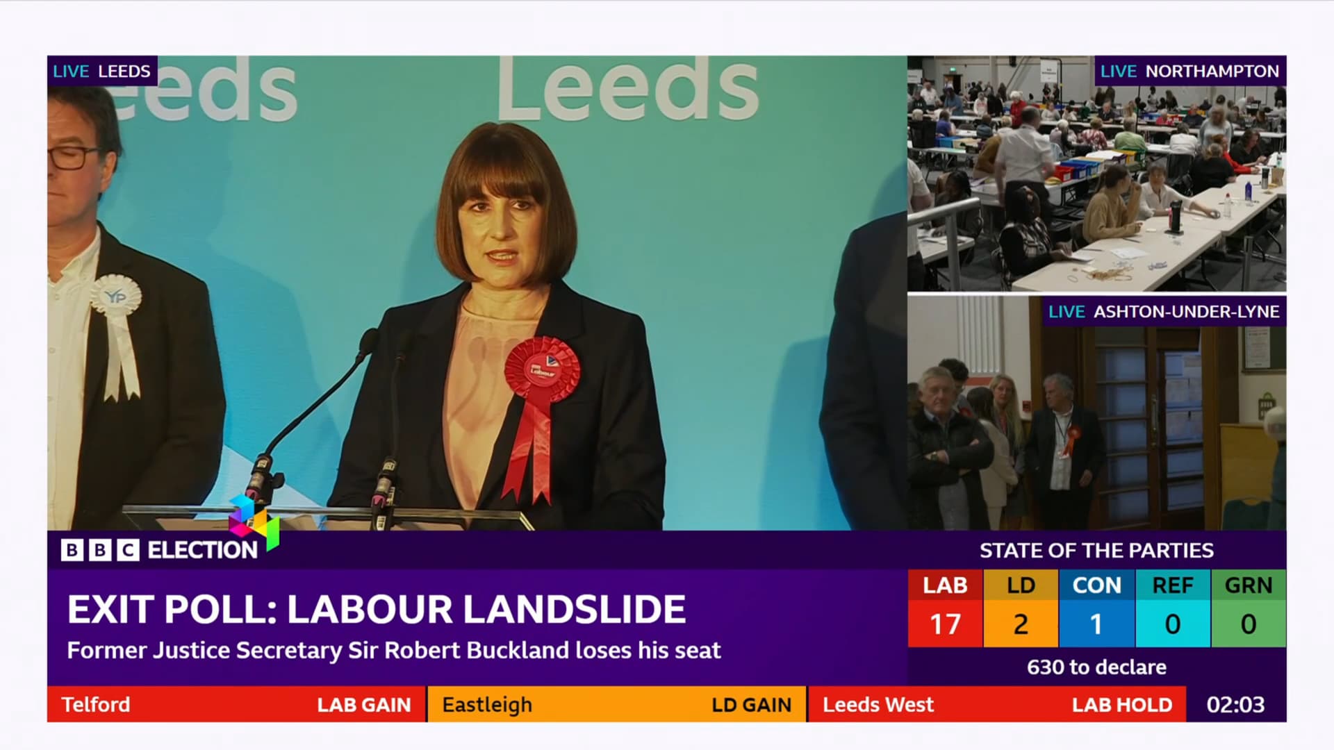 The BBC has mentioned that many seats (including key government ministers seats) will be called between 3am-4am.