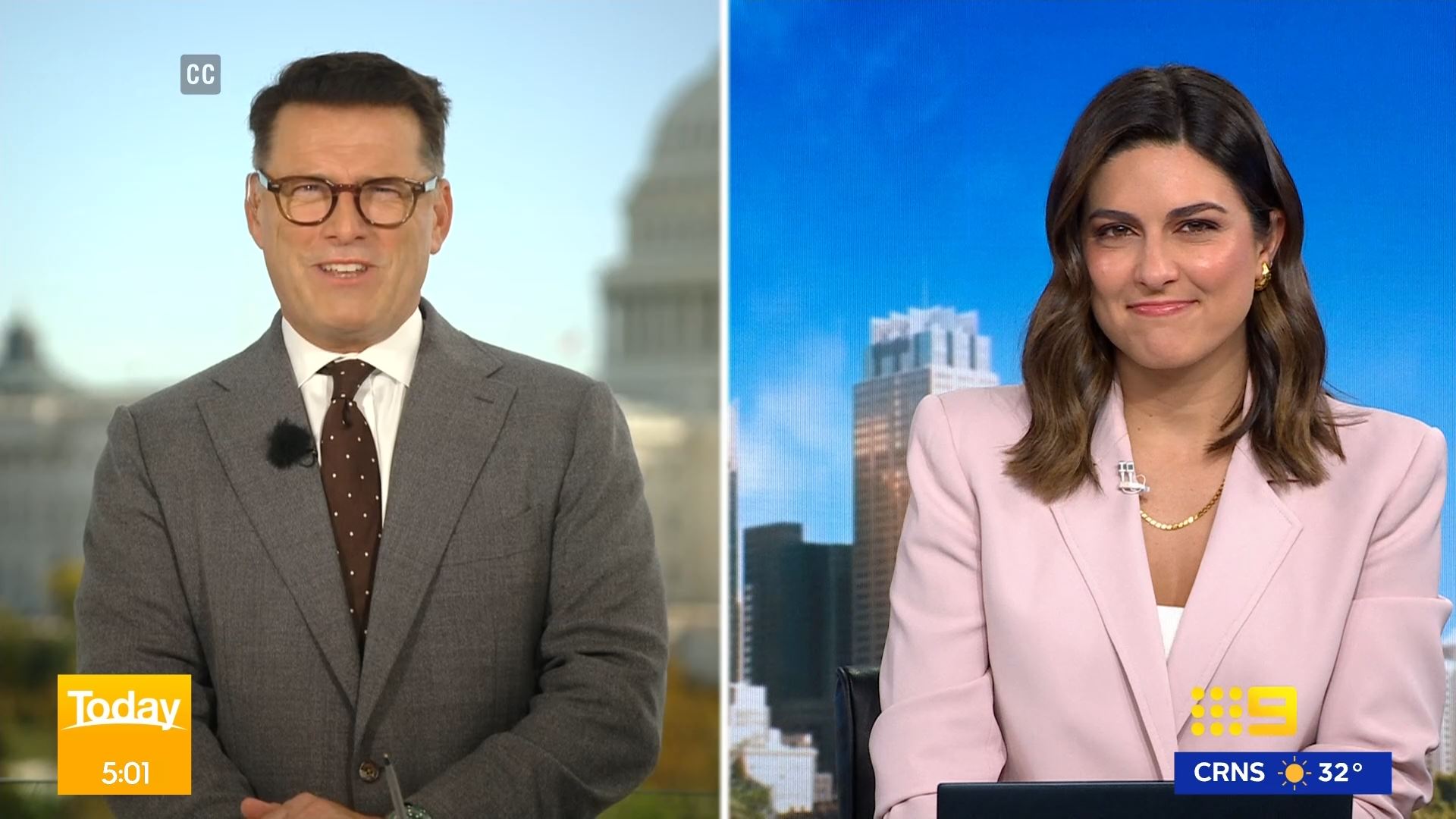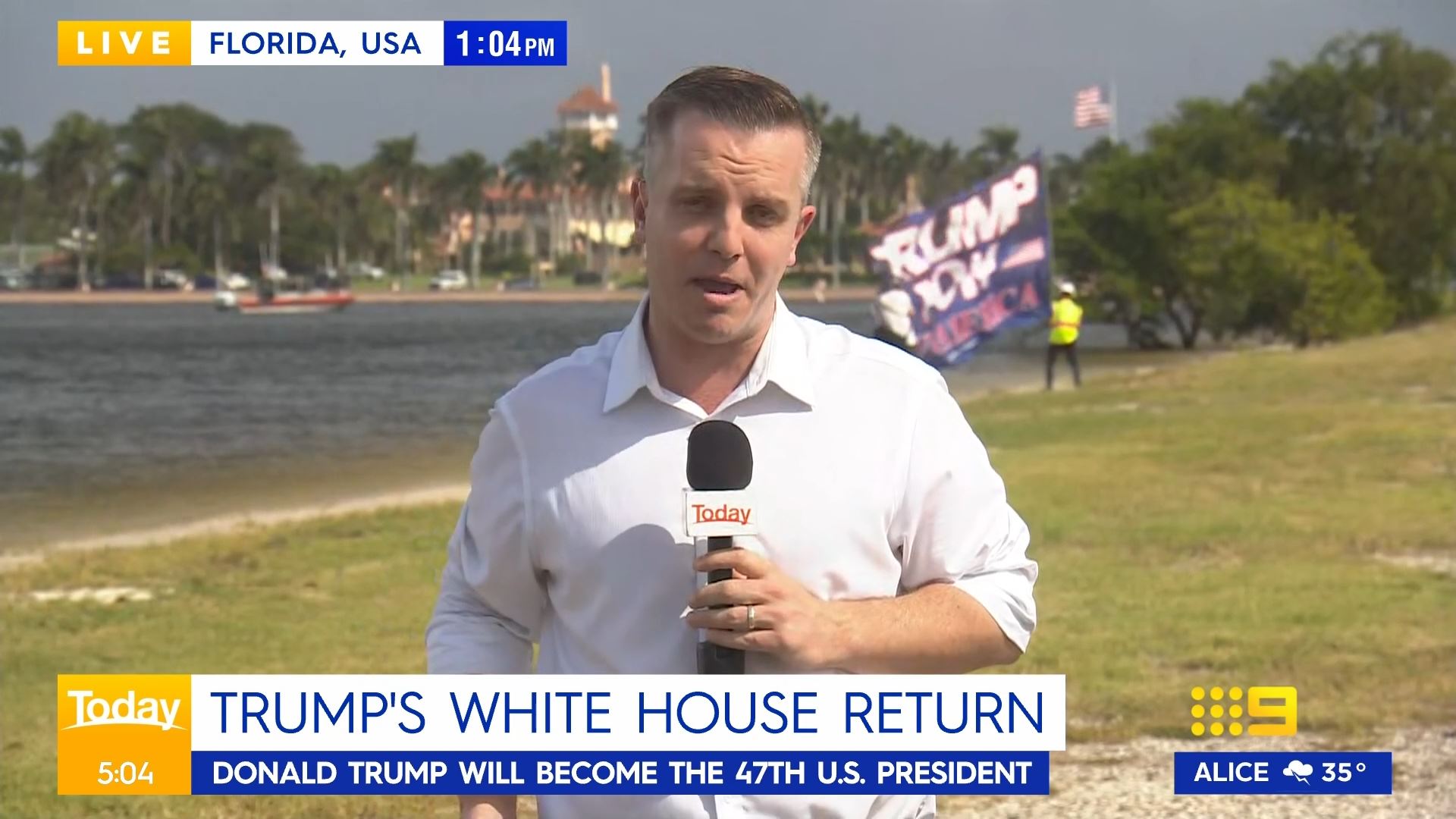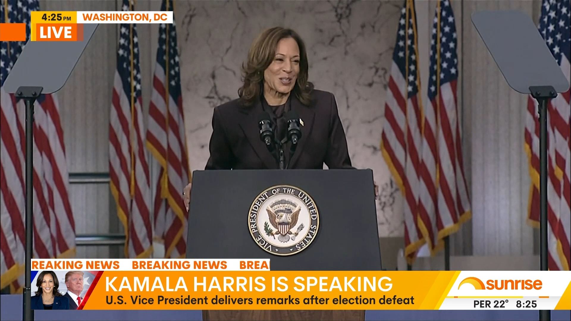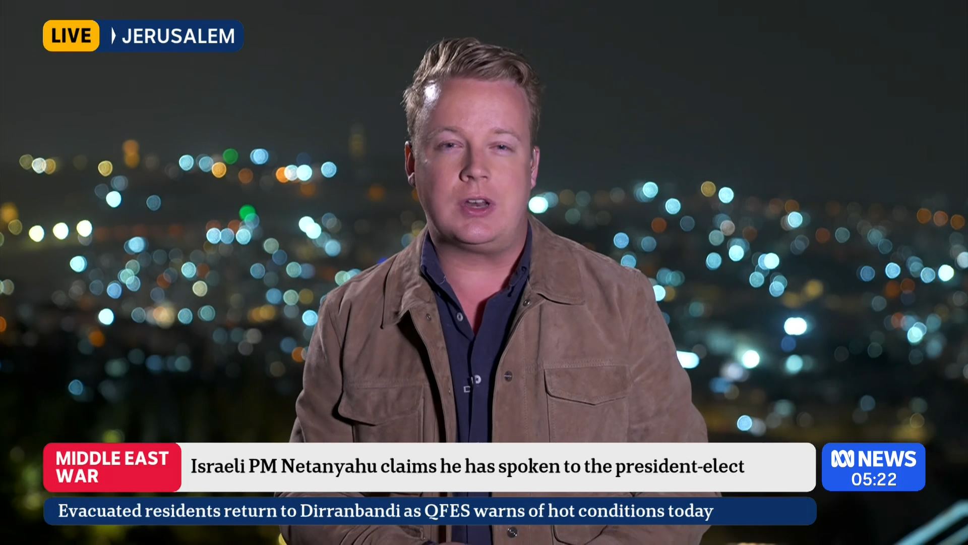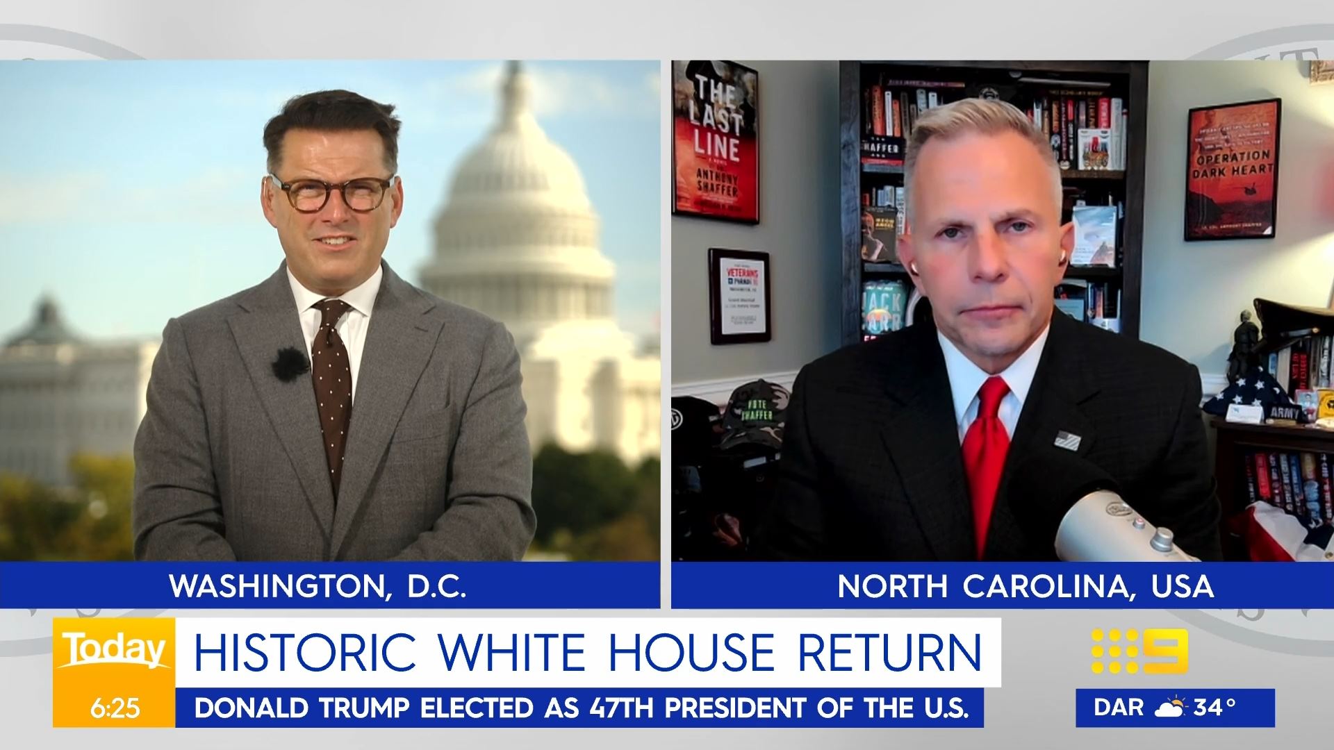 After this crosses to Tim Lester outside Trump HQ, David Woiwood at Harris HQ, Mylee Hogan in Pennsylvania and Mark Riley at Parliament House. Probably look lives, they were effectively the same as what aired in Sydney except for the reporters using Daniel’s name.