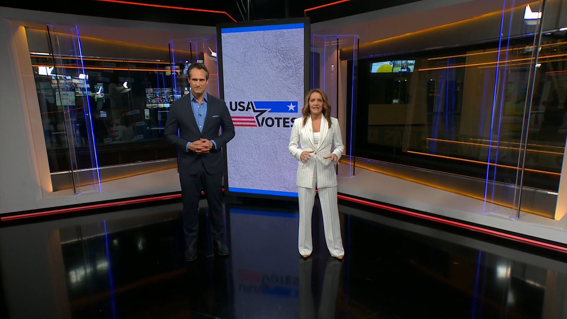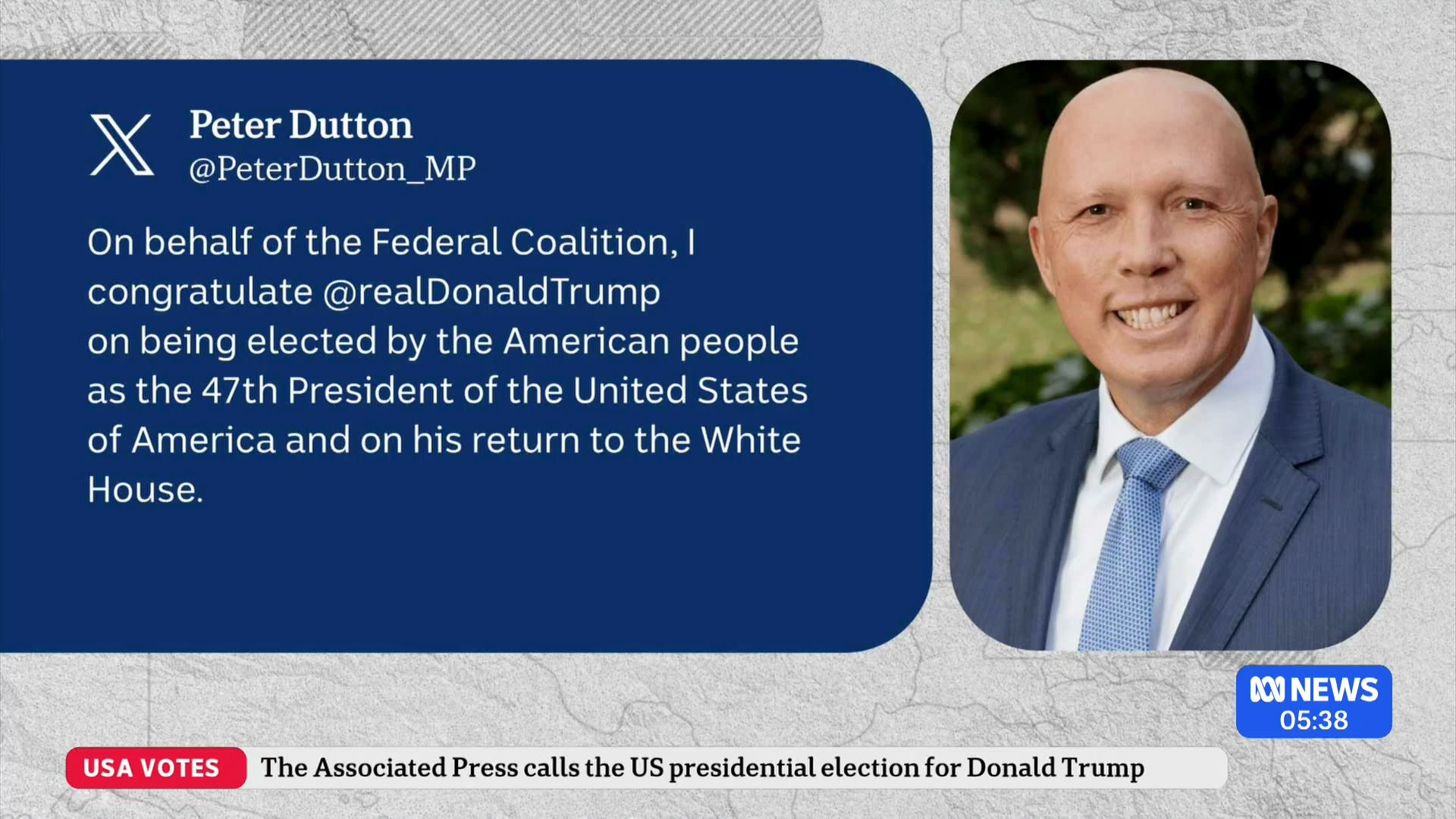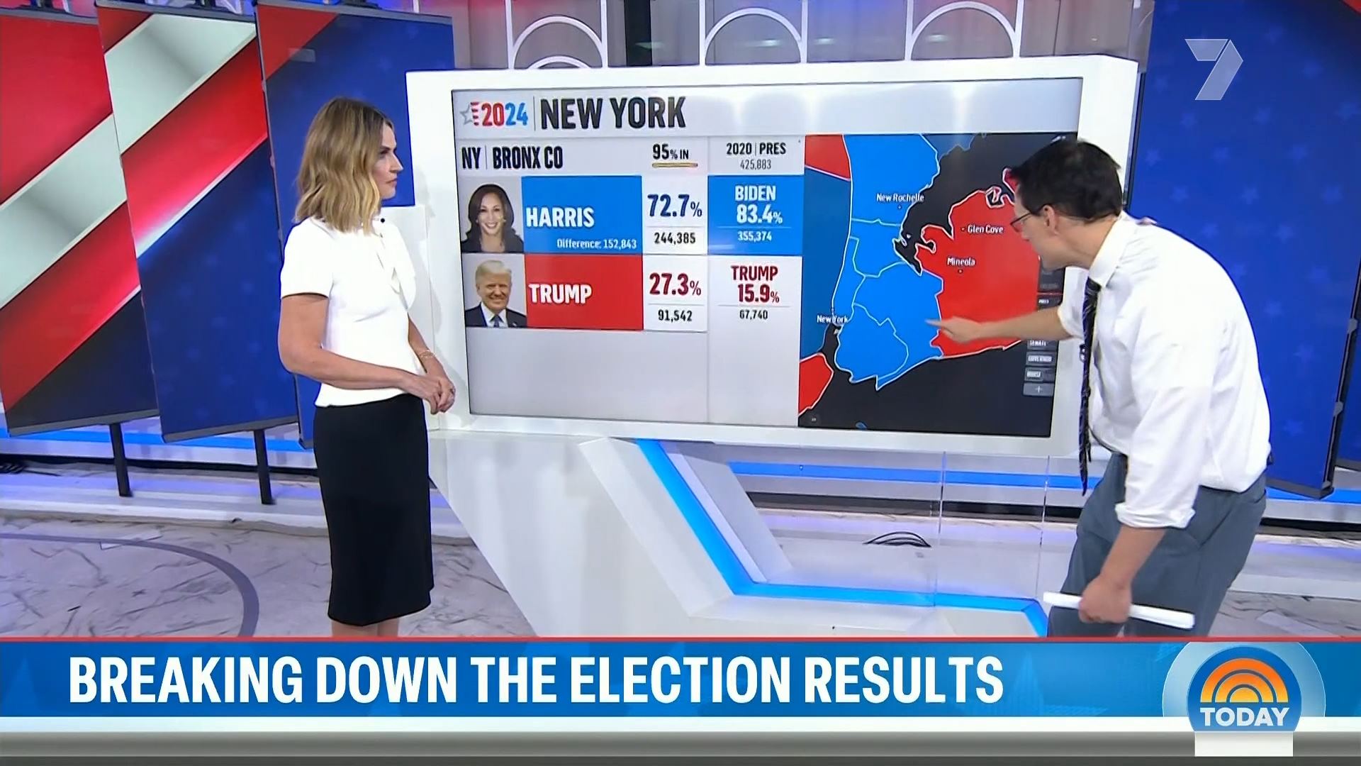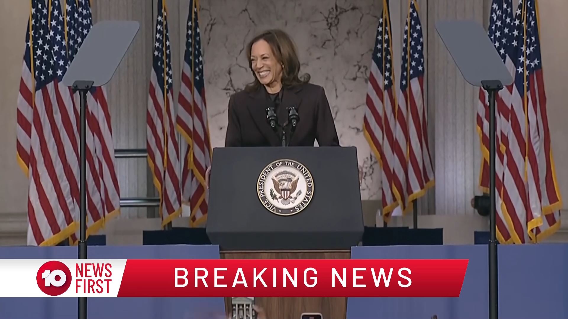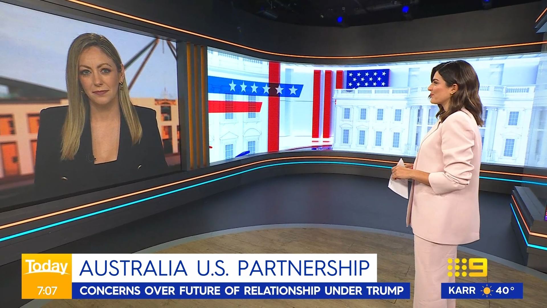 After this crosses to Tim Lester outside Trump HQ, David Woiwood at Harris HQ, Mylee Hogan in Pennsylvania and Mark Riley at Parliament House. Probably look lives, they were effectively the same as what aired in Sydney except for the reporters using Daniel’s name.