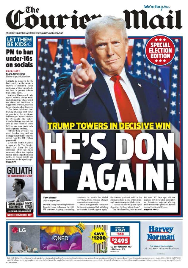 It appears Seven Regional had local news as normal at 6. The 6:30 bulletin started with Daniel Gibson throwing to Trump in progress. They stayed with the speech for for six and a half minutes until JD Vance finished speaking then went back to Daniel who introduced the almost 8 minute package on the election which was also the lead in Sydney’s 6pm bulletin.
