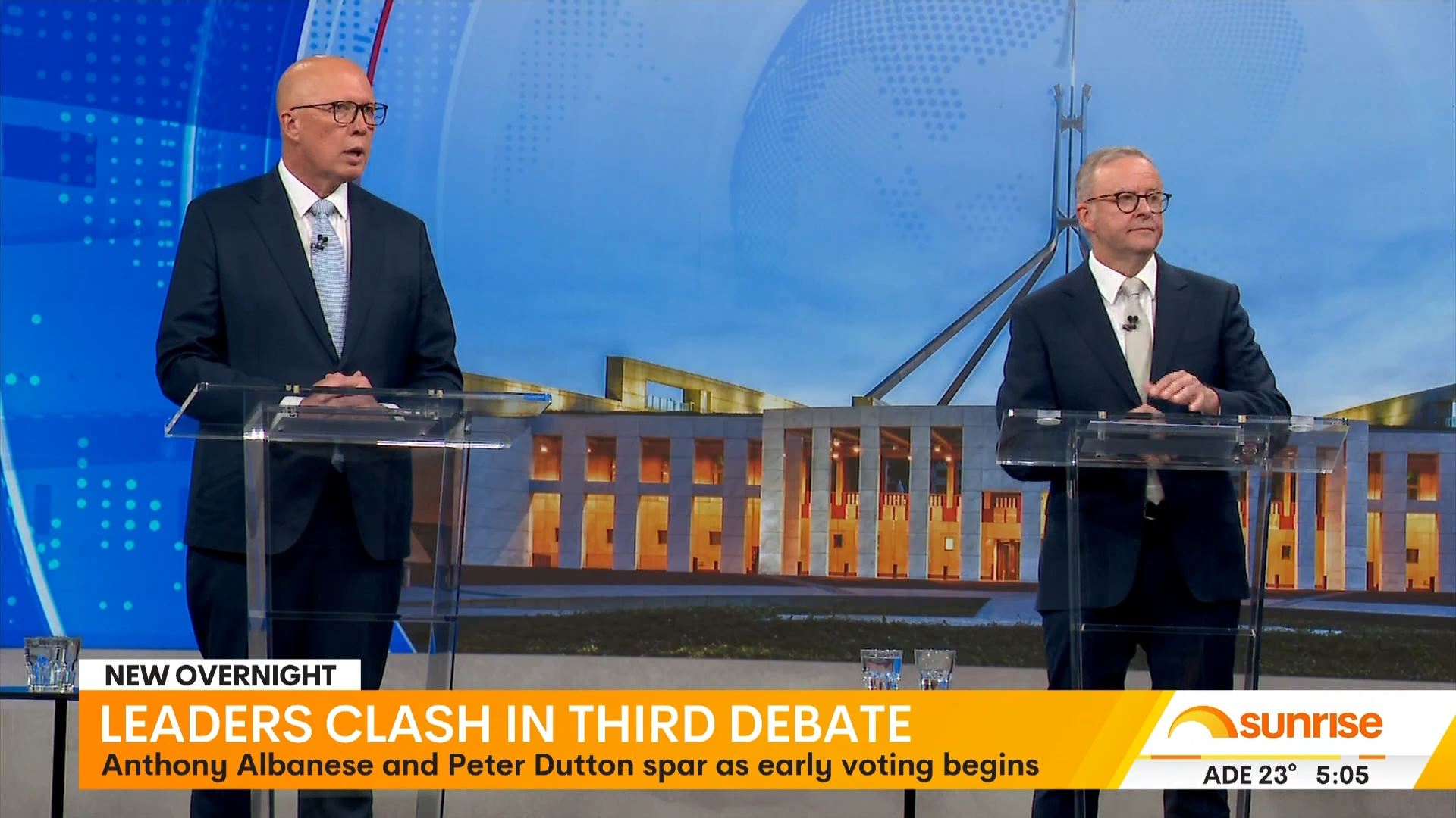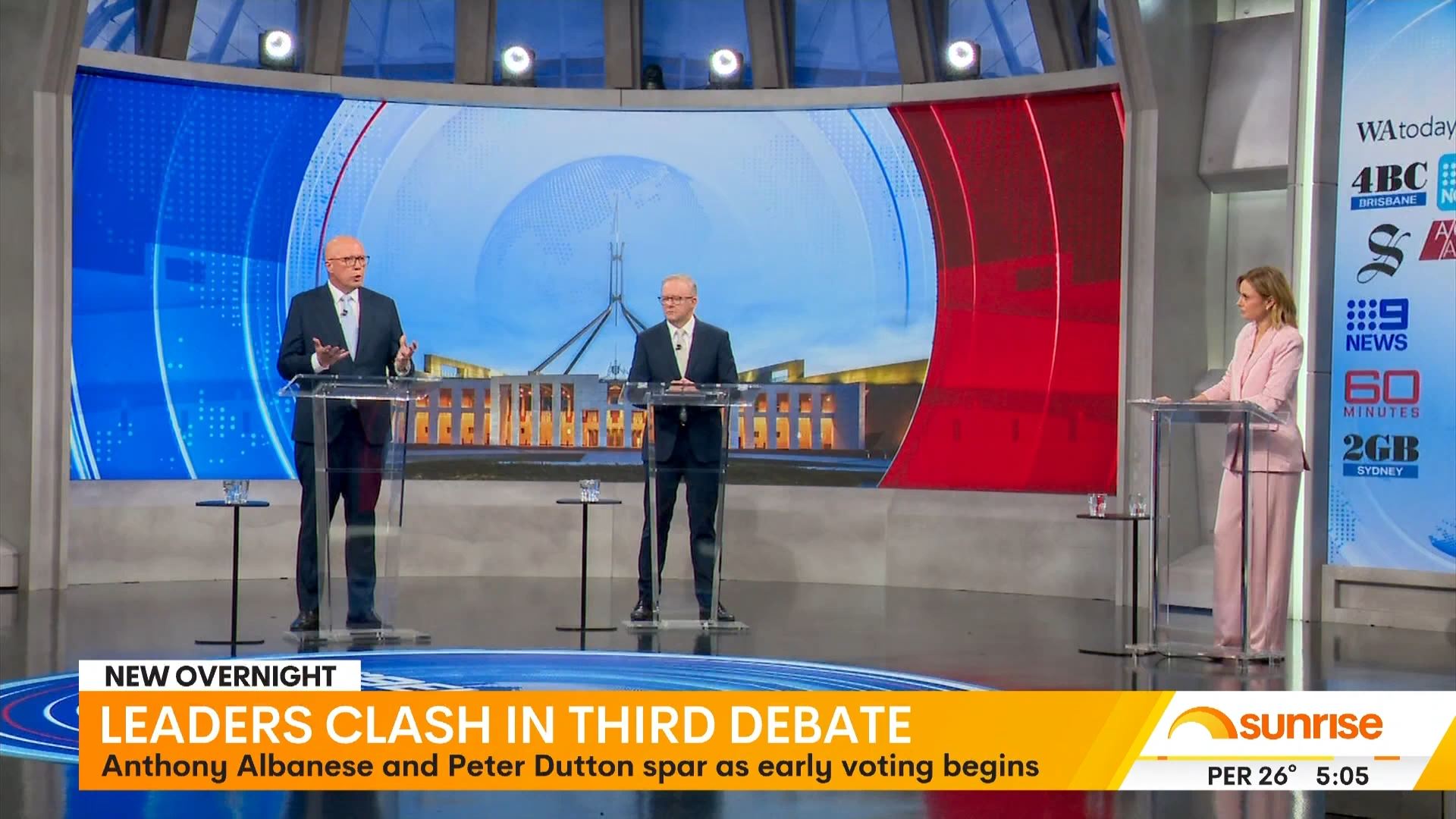 So far this morning after almost 3 hours Sunrise still has no coverage of last night’s debate (that I could see). There was coverage in the Early News.