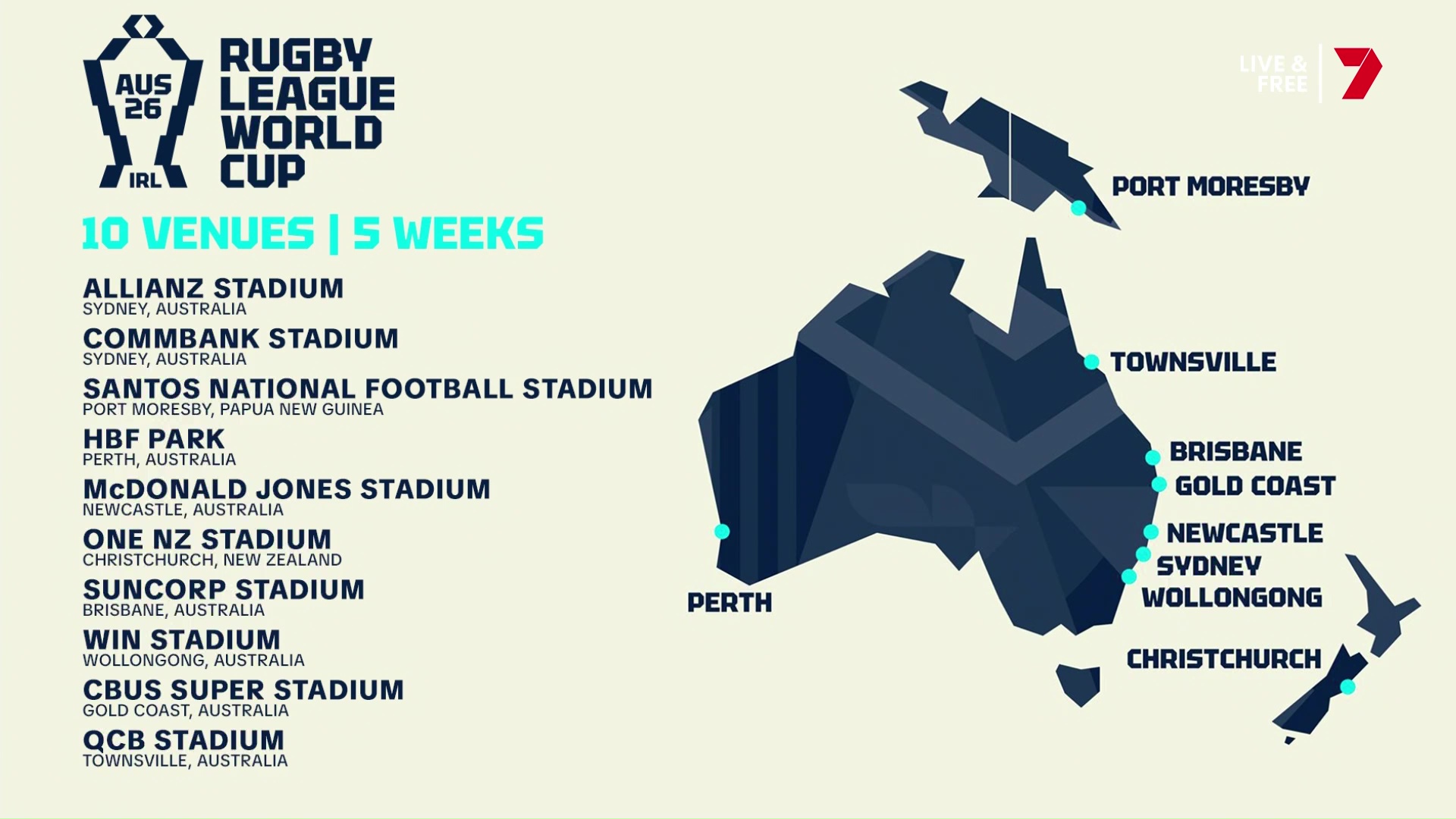 As mentioned at the end of tonight’s Ashes broadcast, Seven will show the RLWC draw announcement at 1pm AEDT tomorrow.