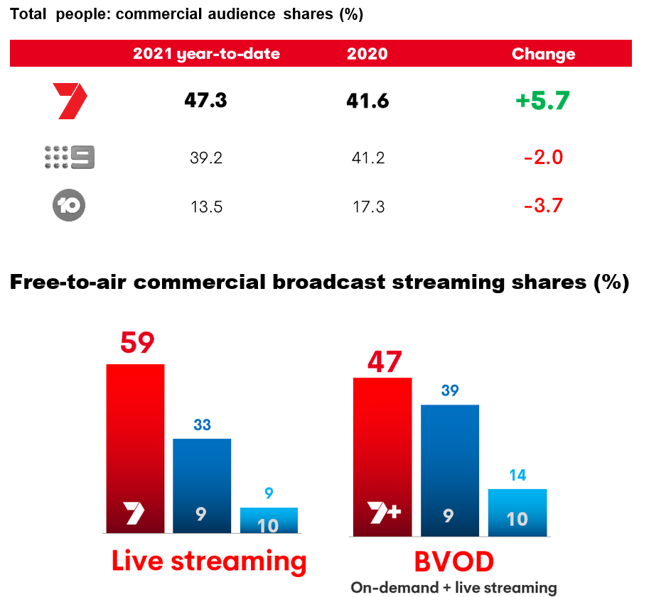 So far this year, 7plus has streamed more than 12 billion minutes of content, 21% more than its nearest commercial competitor.
