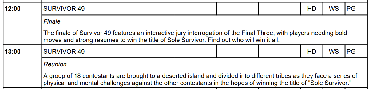 9GO will do the usual live Survivor finale during the day on Thursday 18 December and then the encore from 7.30