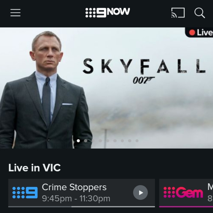9Now doing what 7Plus do in featuring the current main channel ‘live stream’ on the home page (including movies), this cap also includes incorrect EPG (should say “Casino Royale 8:35pm - 11:30pm”)