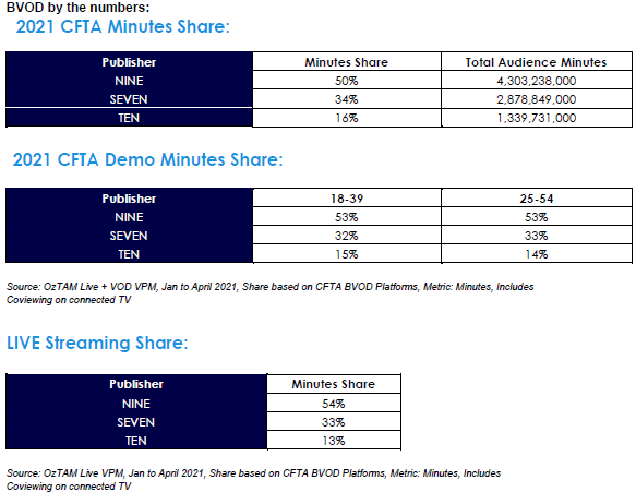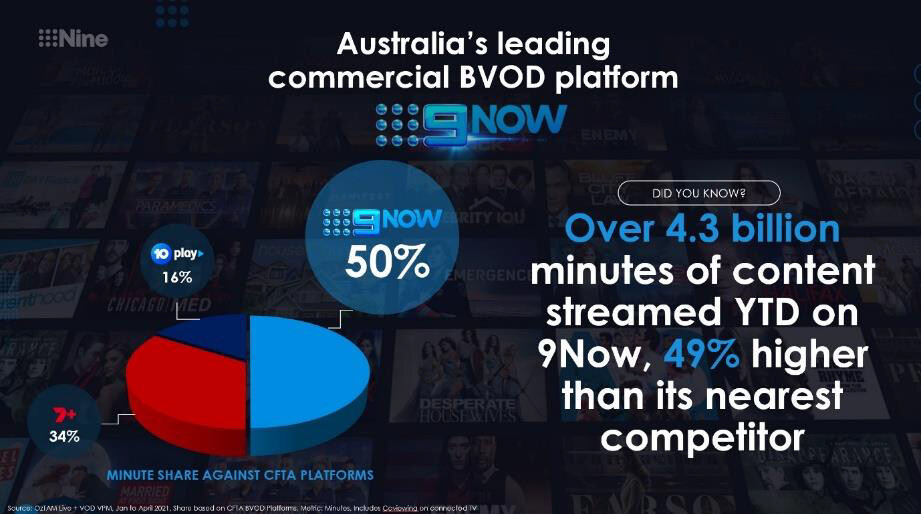 As of April 30, 2021, 9Now had recorded a massive 50% share of minutes consumed between January and the end of April among Total People. In the key demographics, 9Now has a 53% share among both 18-39s and 25-54s