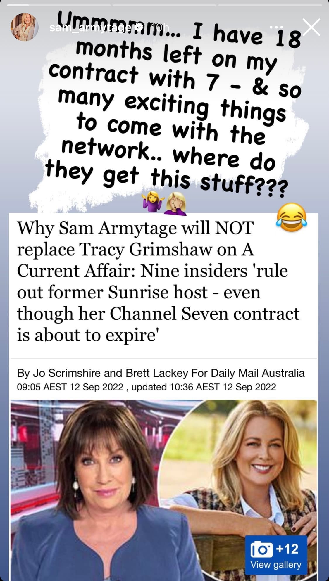 It’s hard to know what to believe from what they have said. Some of it is Woman’s Day type speculation. Stan Grant, Carrie Bickmore seriously? Anyone can just list names.