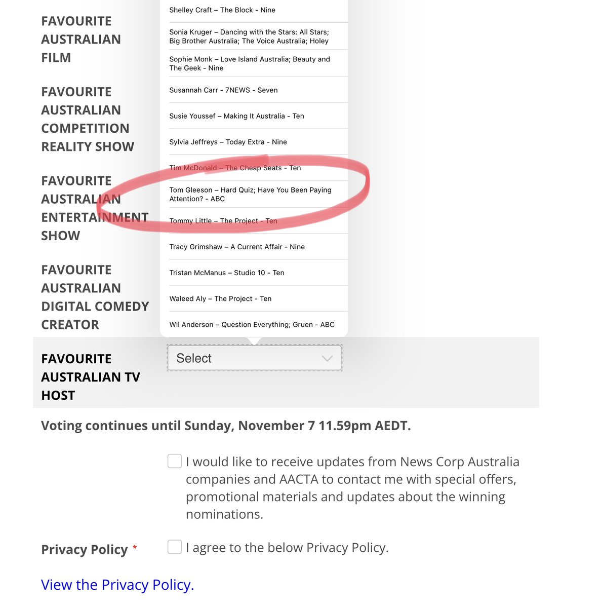 - Favourite Australian TV Host