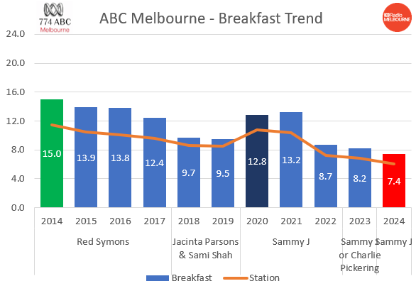 Donât underestimate the axing of the 7:45 news in mid 2020. I recall an article, possibly from the MTR era which highlighted th massive switch to 774 at 7:45 for news and AM which somewhat artificially inflated Redâs ratings in the timeslot even though he was off air already.