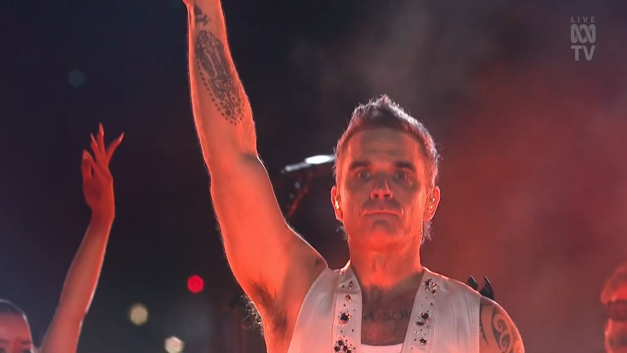 Robbie Williams has arrived. at 11.26pm (and not the expected 11.45pm mark).