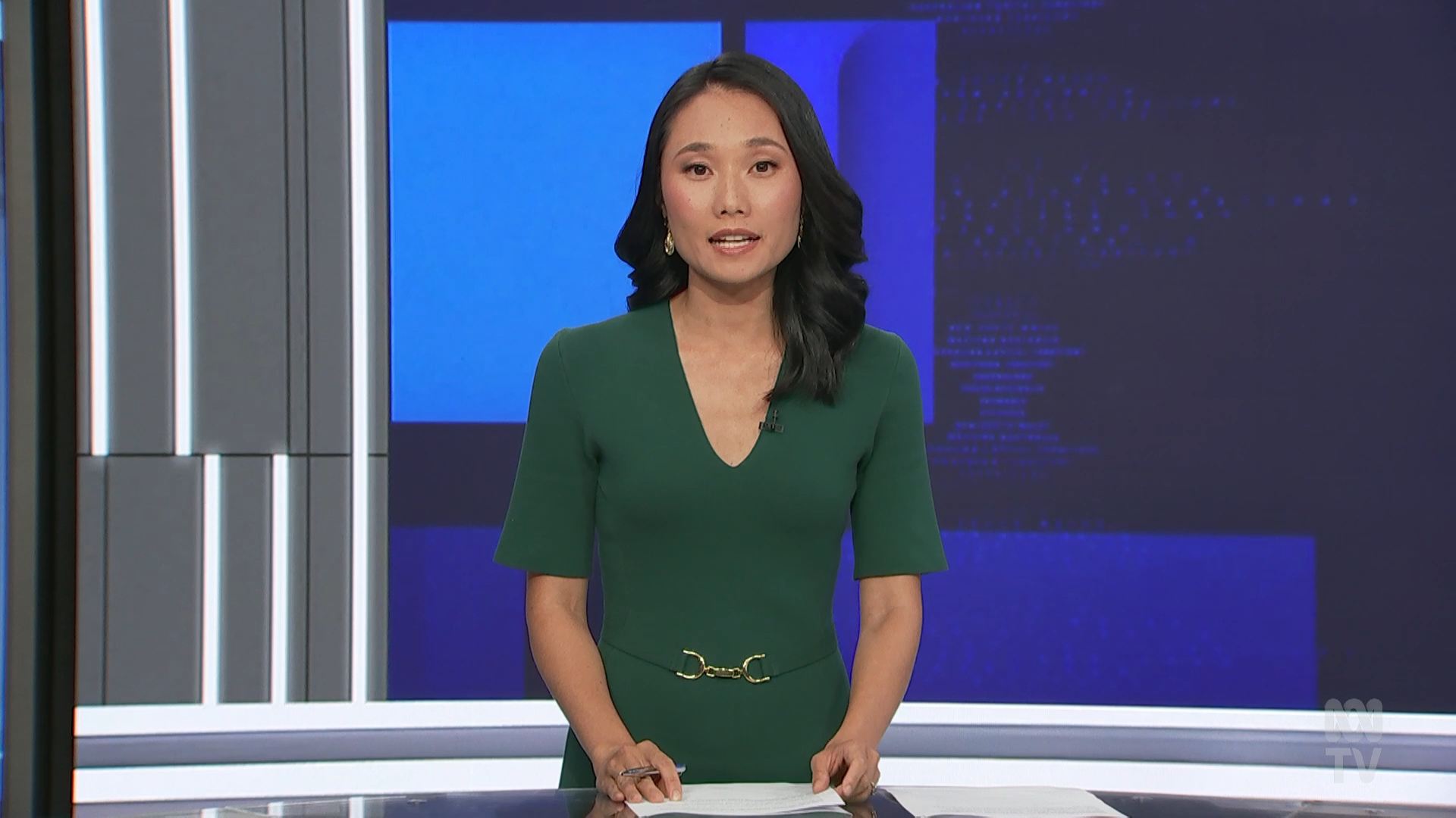 NSW 7pm news had a weather preview earlier in the bulletin and it was presented in front of the video wall next to the desk. Looked much better than the curved wall.