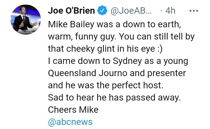 We were saddened to hear today of the death of journalist Mike Bailey.
