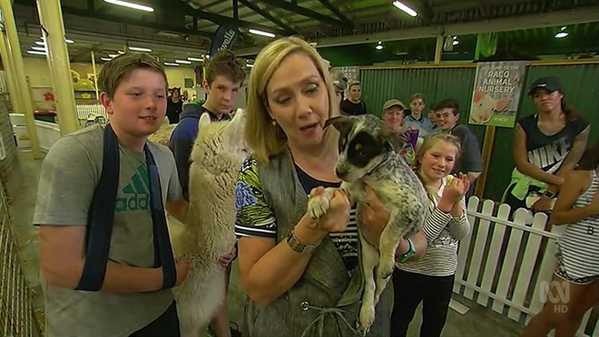 It’s a tradition in Brisbane for Jenny Woodward to present ABC News weather from the animal nursery at the Ekka.