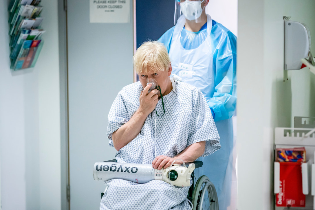 A jogger sees Cummings and his family in Durham as more and more people fall ill with Coronavirus. Boris is taken to St Thomas’ hospital as his Covid symptoms persist. Care homes and hospitals struggle to cope with the number of Covid cases and deaths.