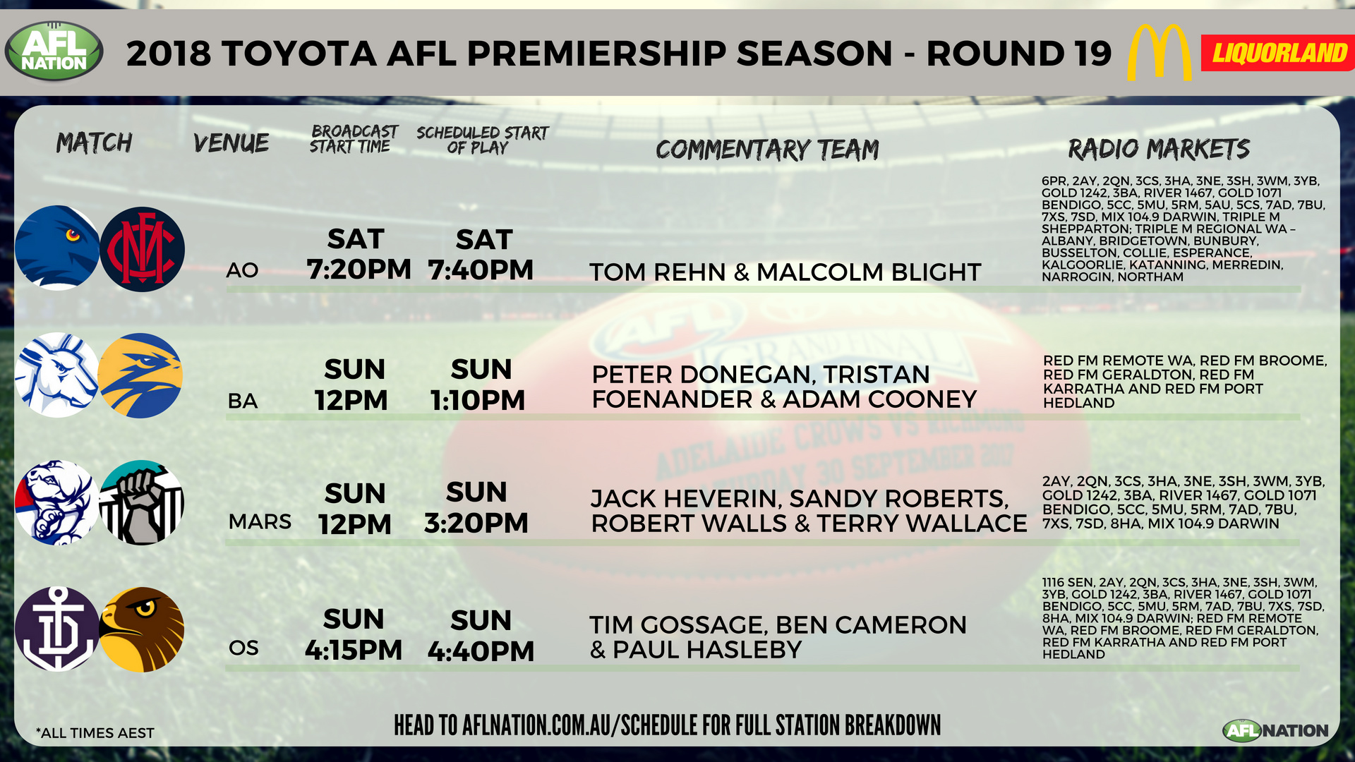 AFL Nation commentary line-up for Round 19