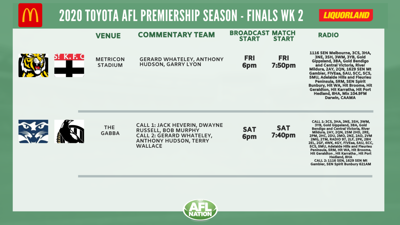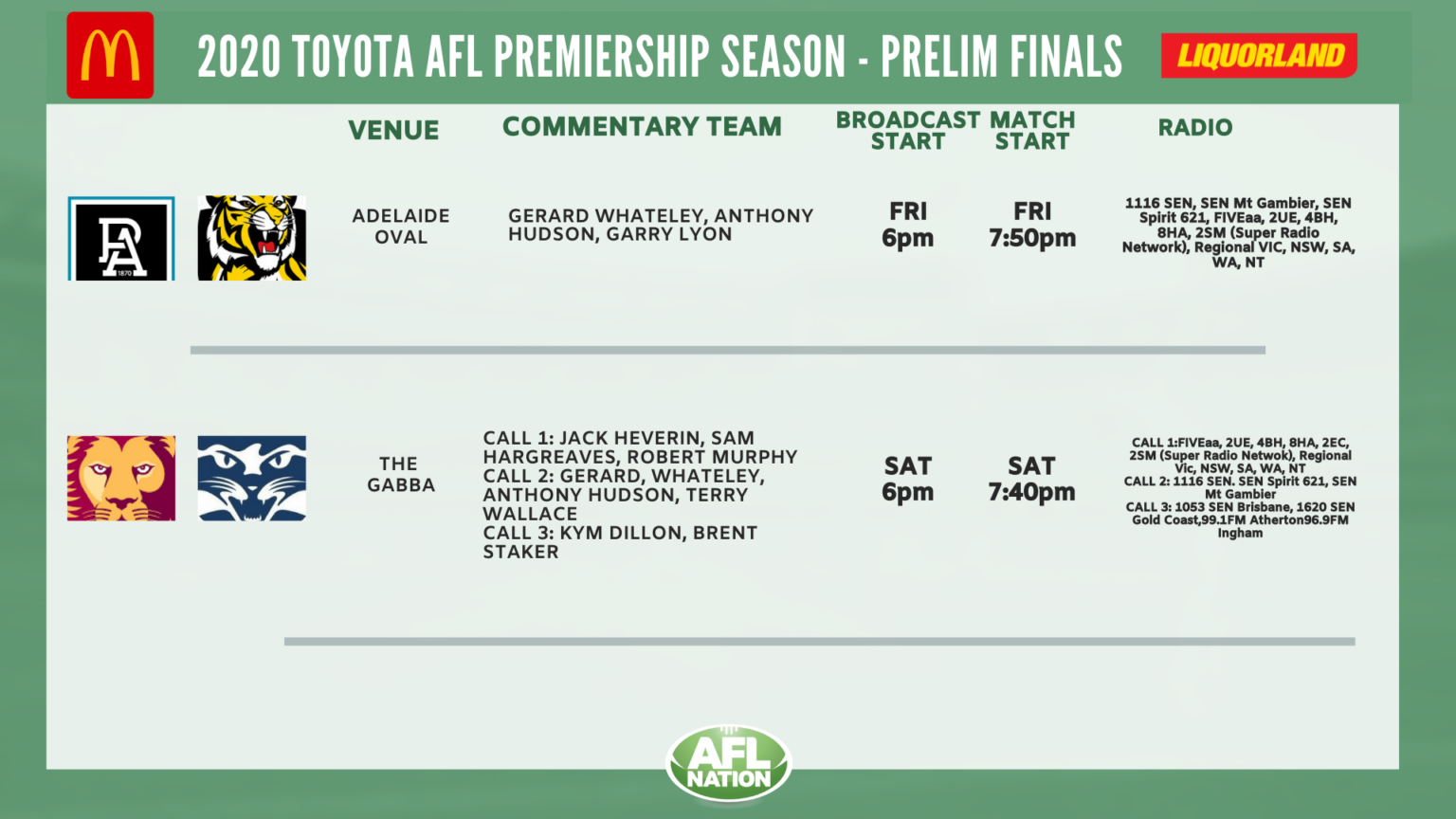 I reckon some information is wrong because FiveAA will have its own commentary team for the Port-Tigers preliminary final at the Adelaide Oval, rather than taking AFL Nation’s call.
