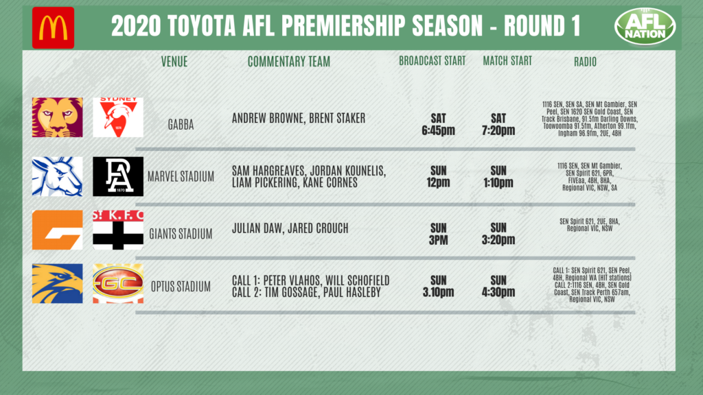 Tonightâs season opener will also be covered by SEN in Victoria, SA and WA.