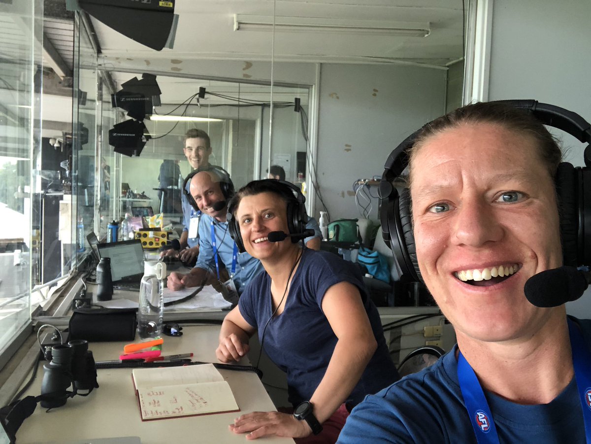 ABCâs commentary team for Carlton v Collingwood: Alister Nicholson, Joel Peterson, Chyloe Kurdas, Meg Hutchins and Jess Webster.
