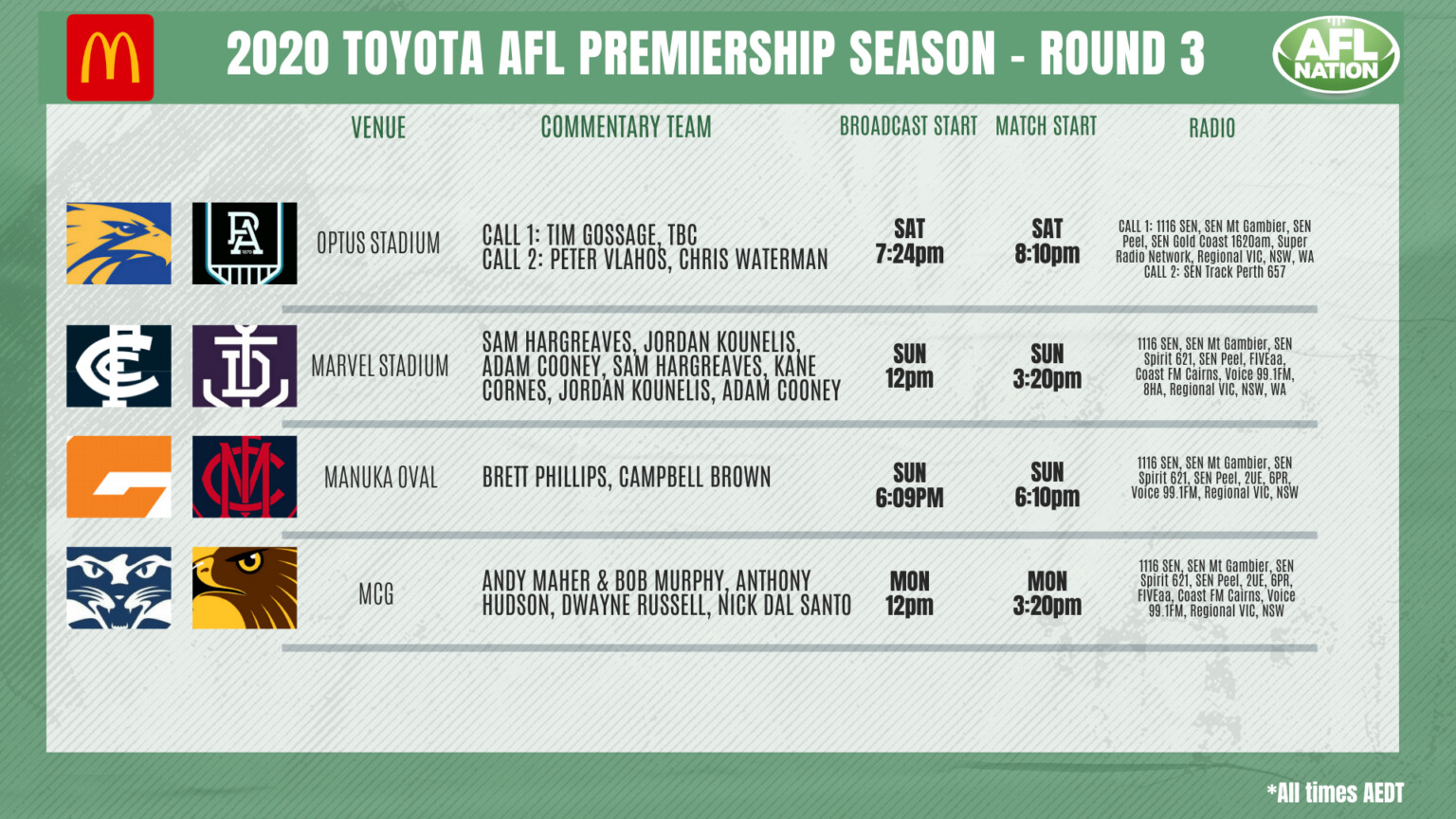 Triple M coverage for Round 3 - It is covering all nine games this round for listeners in Victoria, Adelaide and Perth.