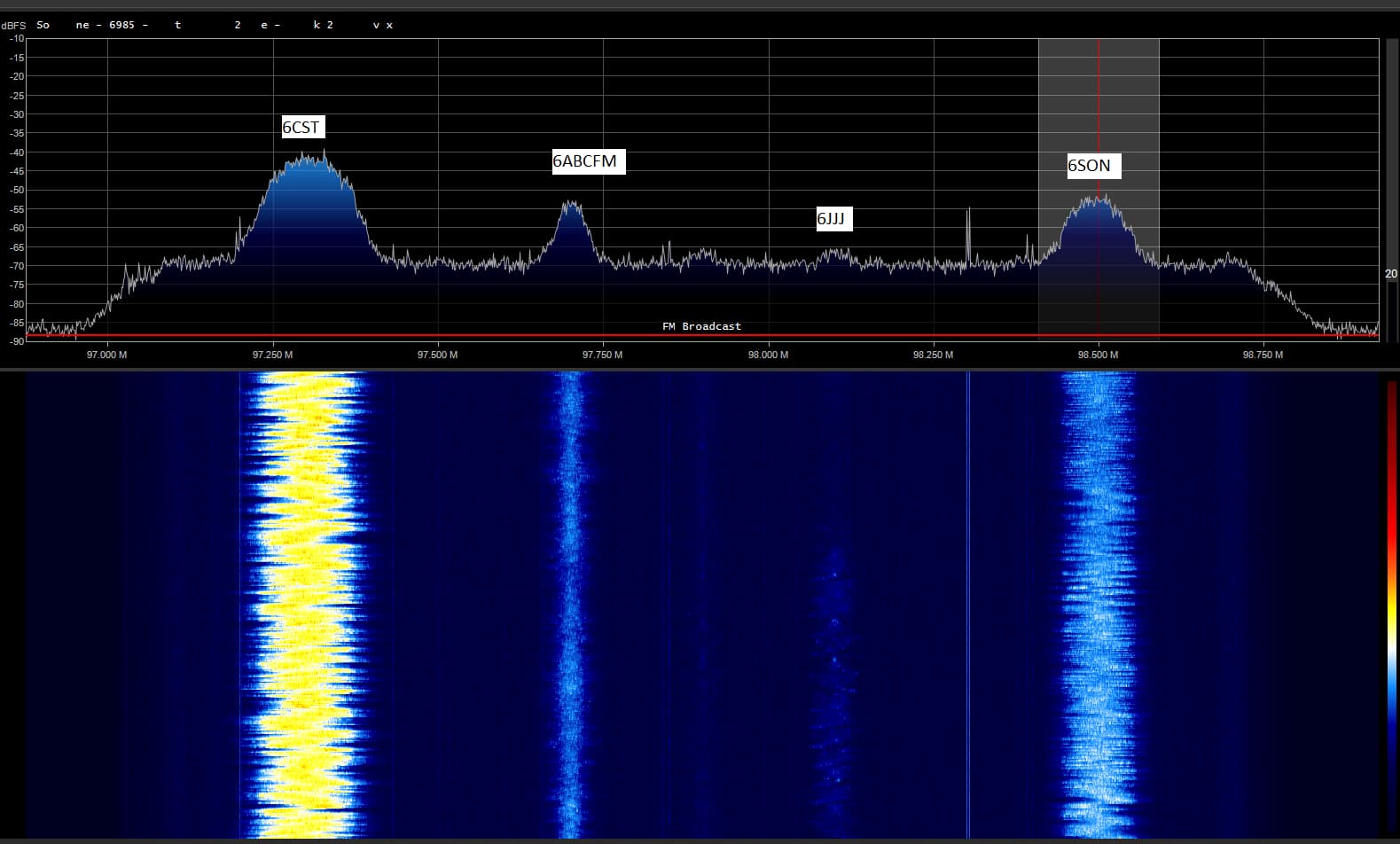 At Kings Park, got fair Central Agricultural ABCs on 98.1, 98.9 and 99.7… also weak 100.5, may be Hit Bridgetown ??