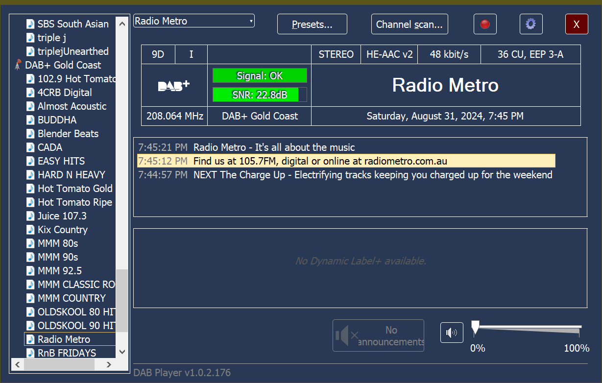 Managed a RDS PI decode of 95.1 Triple M Gladstone reached an hour or so earlier.