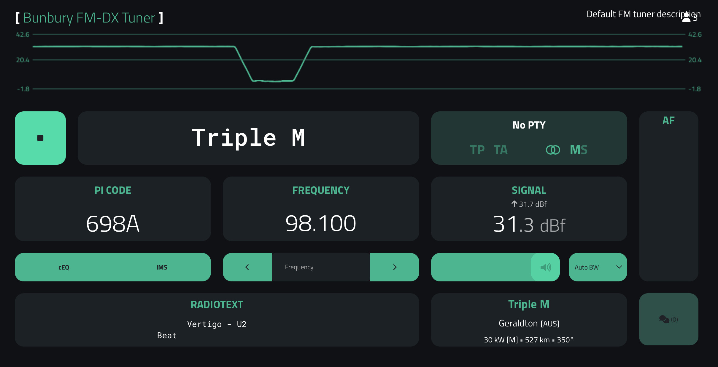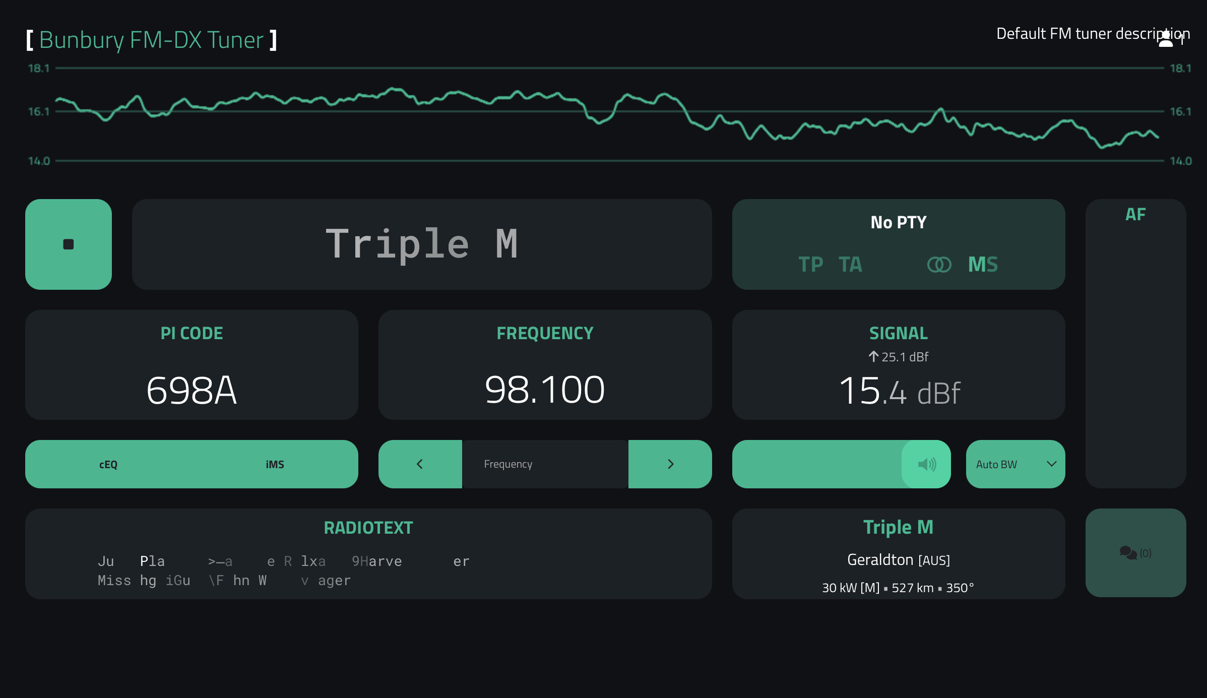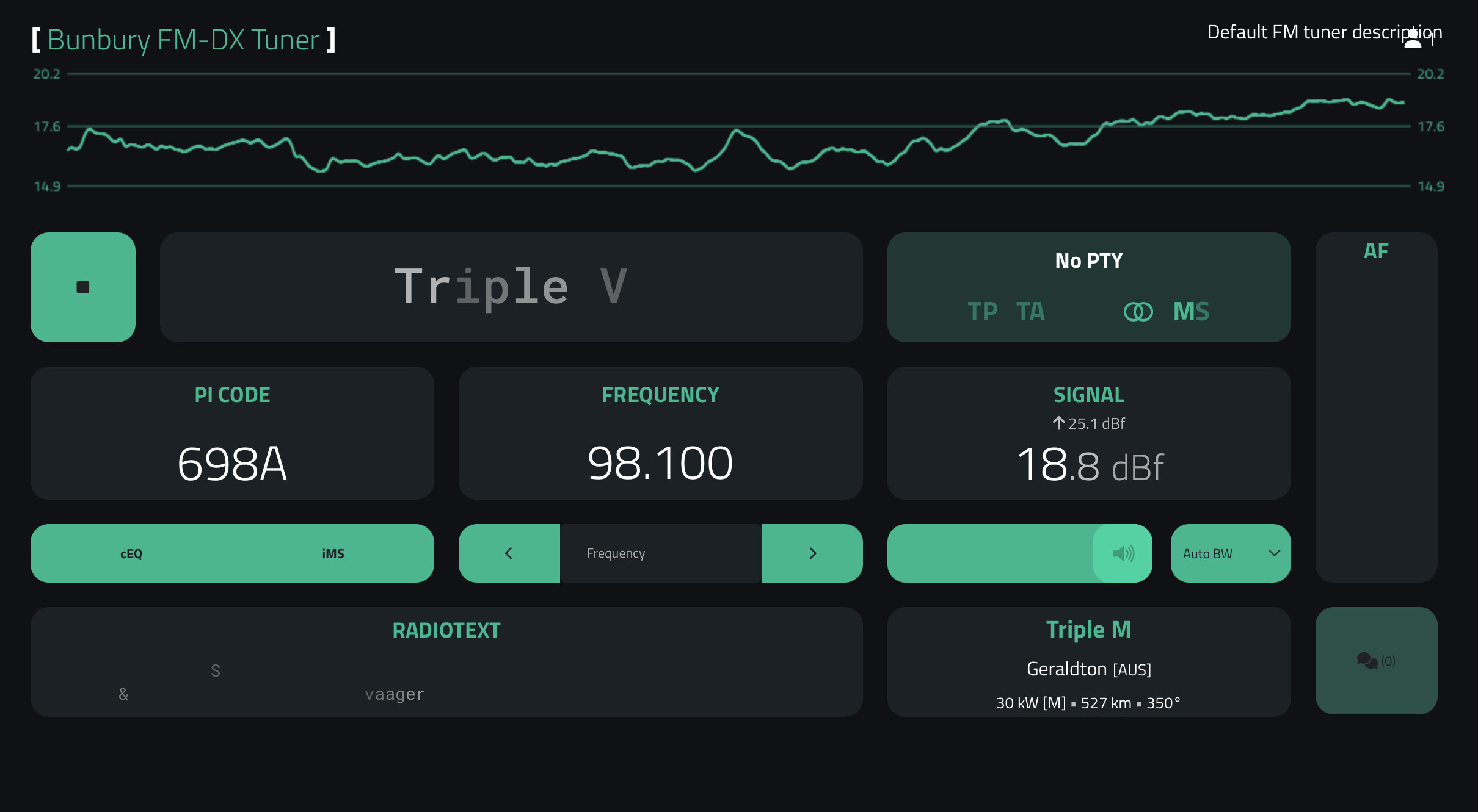 Pay your respects to the last surviving clear long-distance signal that is Triple M Geraldton on 98.1 FM which has now lost its RDS due to the signal weakening further. That signal will too disappear before you know it. It was fun while it lasted.