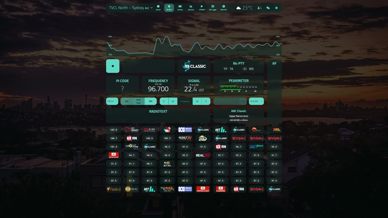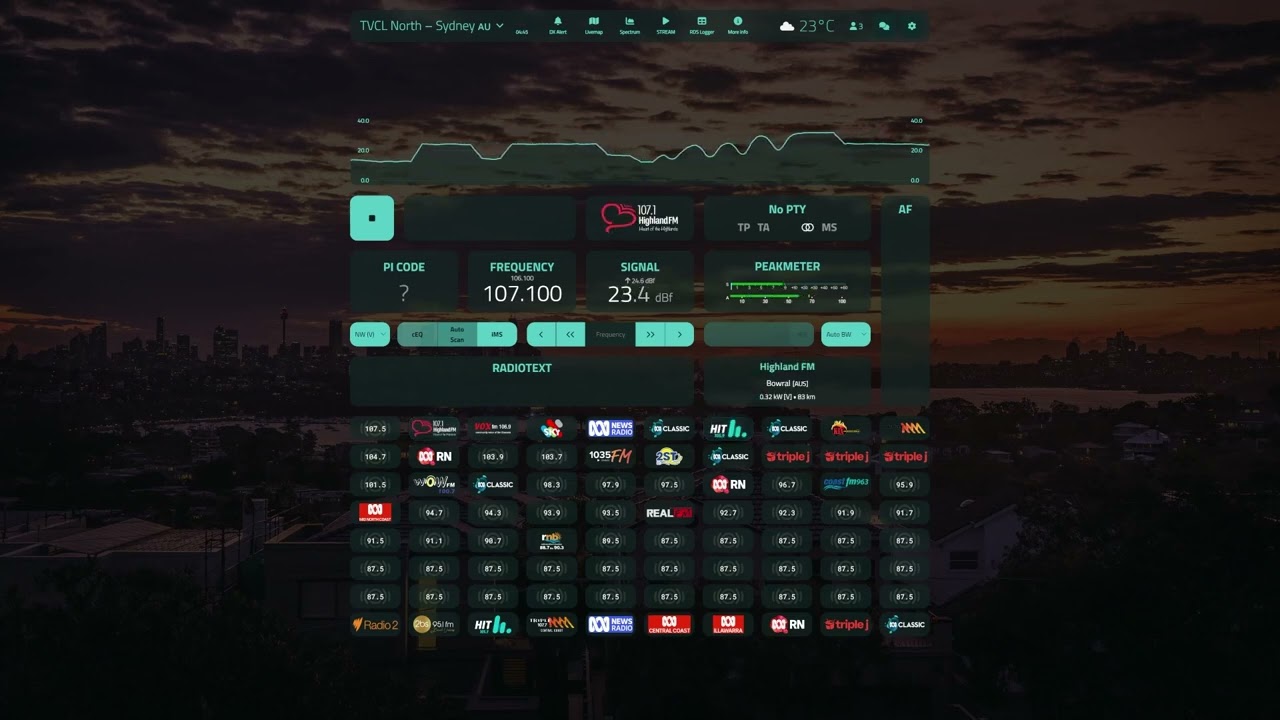 Picking up Triple G Gunnedah broadcasting on 97.5 and Sky Racing Gunnedah on 95.9 on my NW antenna – a first for me. The ABC services from Upper Namoi are a semi-regular catch – but I haven’t seen the community/commercial stations from there previously. At the same time, 2HD is coming in on the NE antenna.