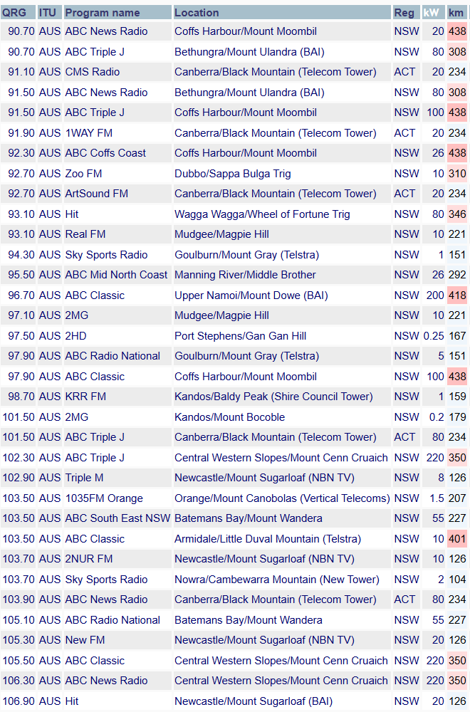 Is that excluding permanent stations? As for Newcastle, I see the commercials listed but not Triple J or Classic, both of which put a much stronger signal towards Sydney.