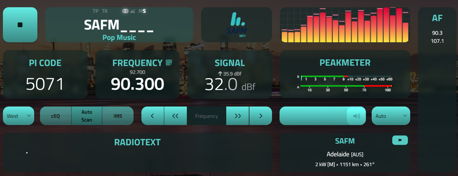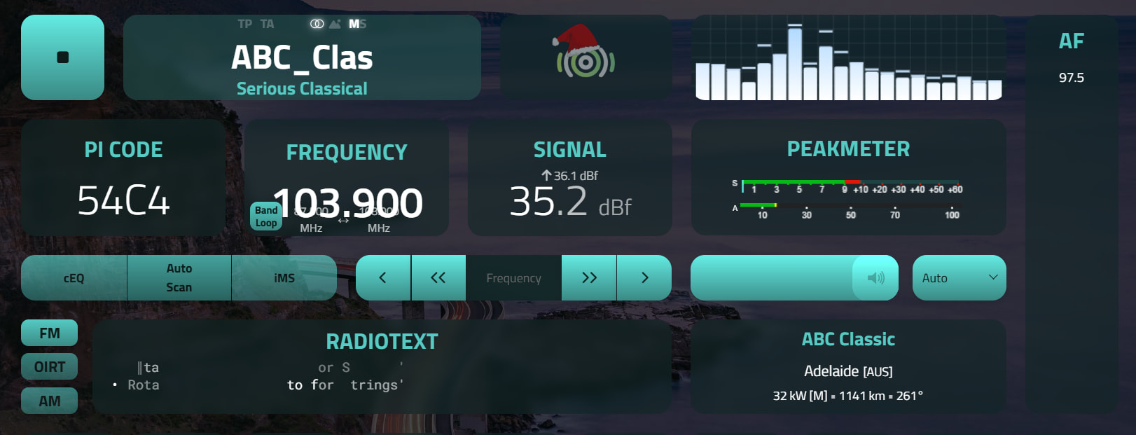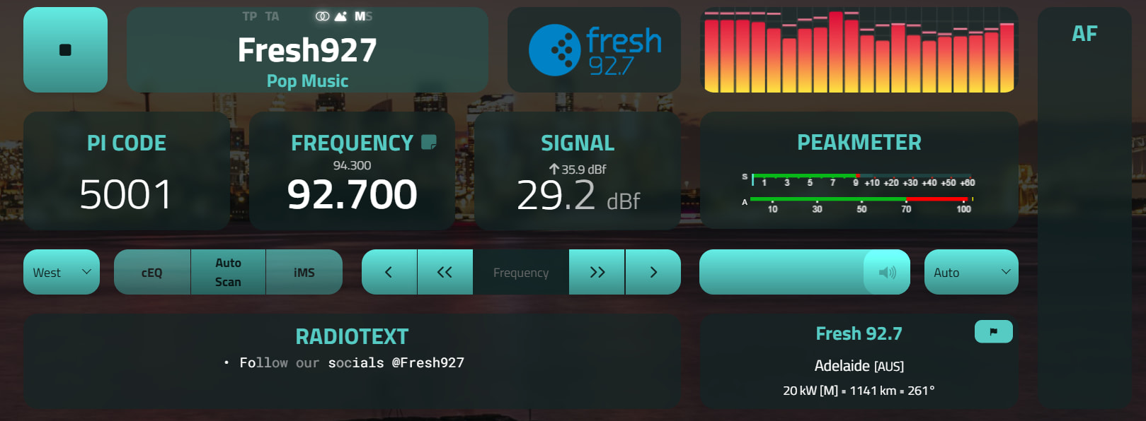 Getting tropo far and wide this morning on the TEF. Bendigo (all ABCs, Vision Australia, Hit and Triple M) Horsham (ABC News Radio and Mixx FM), Ballarat and Mount Dundas ABCs and Broken Hill (ABCs and Sky Sports Radio) are all about. 96.5 was a three-way battle between Hill FM (Broken Hill), Flow FM (Pinnaroo) and Triple H. The tropo seems to favour Broken Hill as I’m getting nearly all of the FMs from there minus 102.1 Triple J (ABC Swan Hill) and 107.7 2DRY (Mixx Swan Hill).