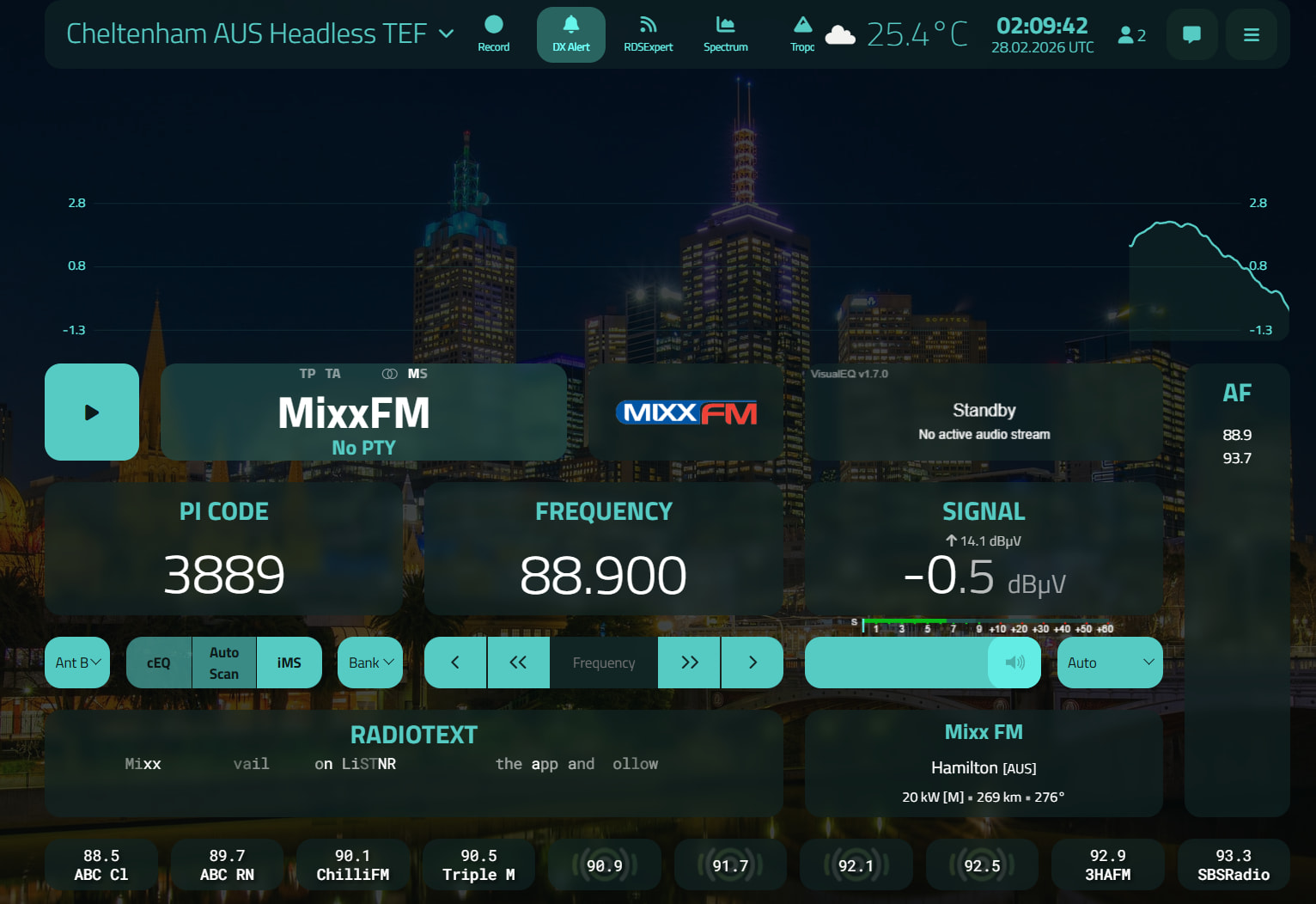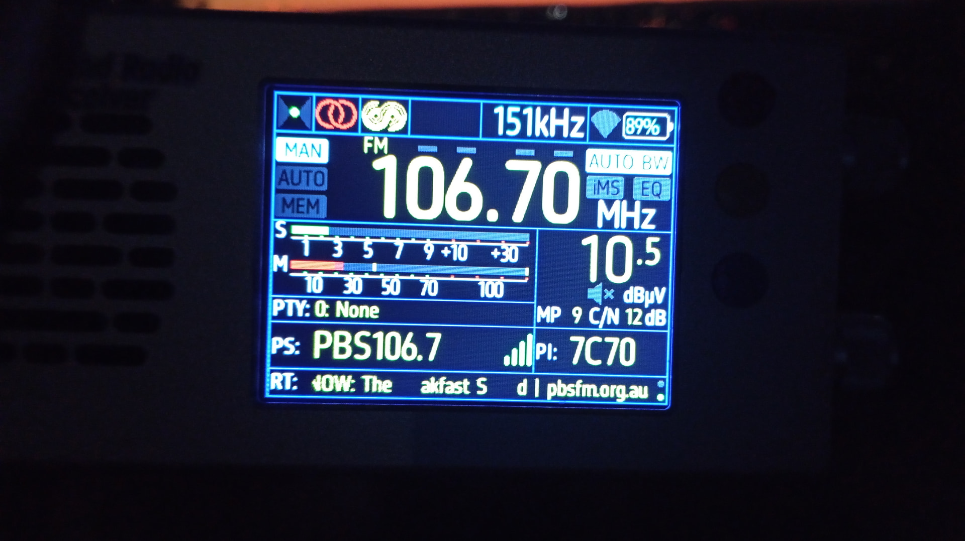 Getting another rare catch, 88.9 Coast FM Lileah, normally blocked by Wyn FM