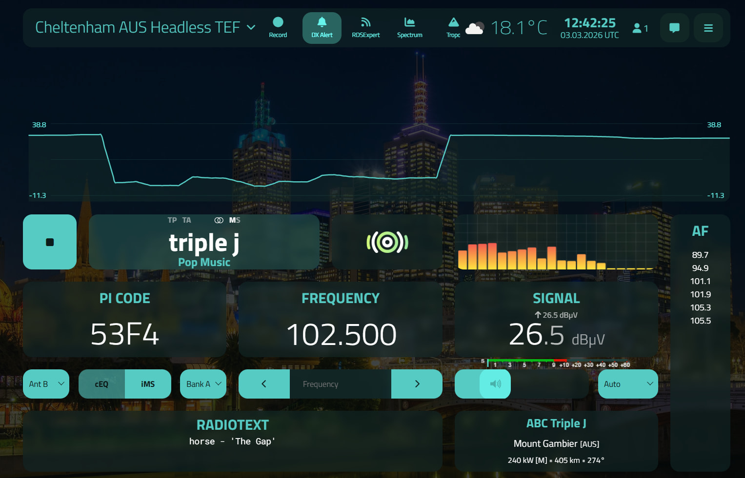 Also I noted that Triple J on 105.3 finally has fixed the pre-emphasis, it now sounds as good as my local on 101.1