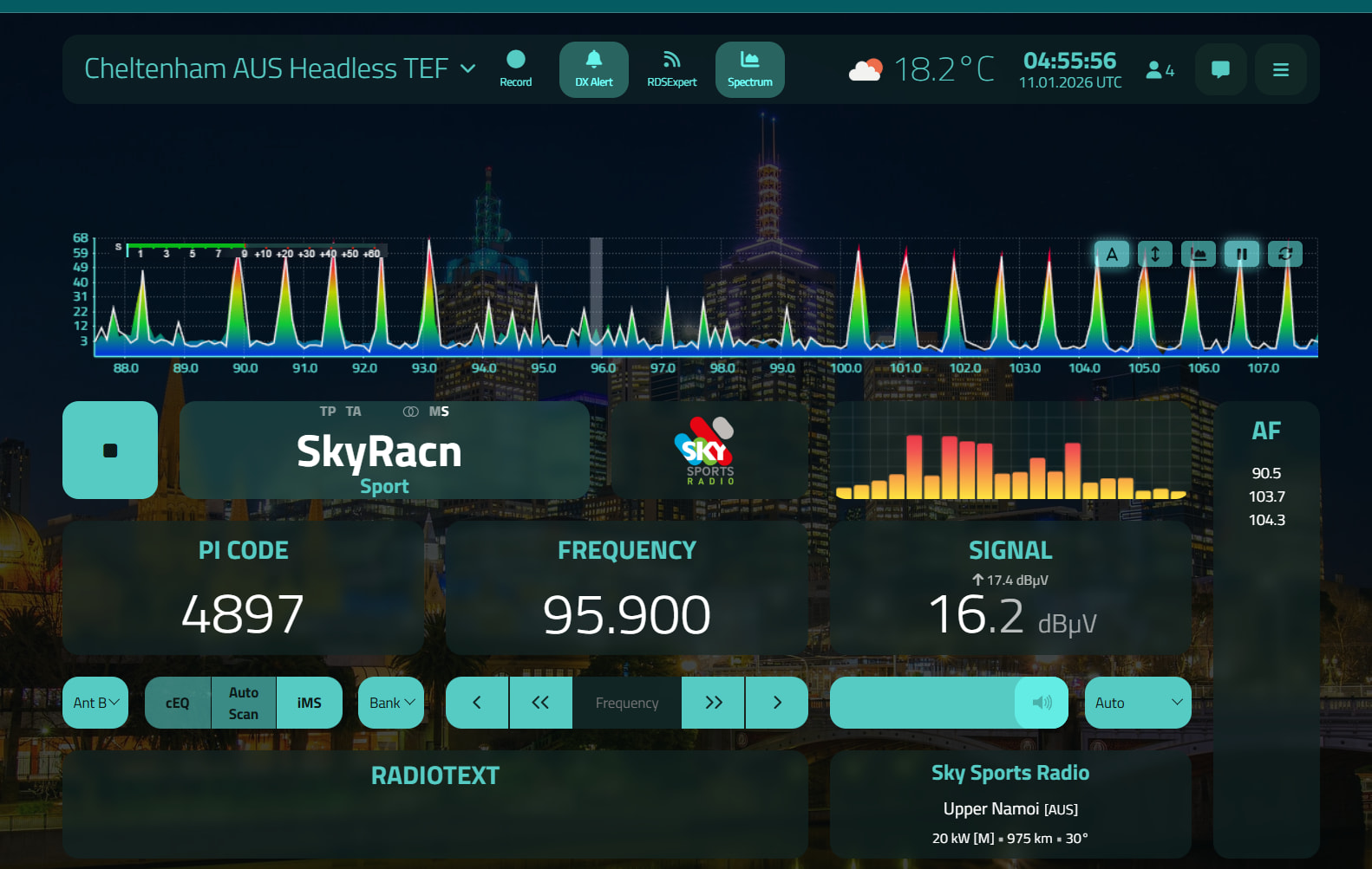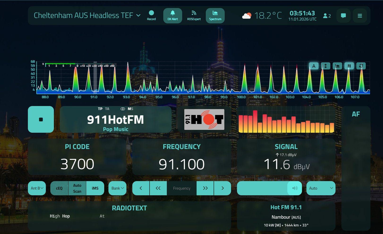I did have a good opening to NCL earlier with RDS on many frequencies, plus 98.5 Djido Loyalty Islands. Also bits and pieces from Queensland- noted Vision 90.1 on air from Biloela- hasn’t been heard for years.