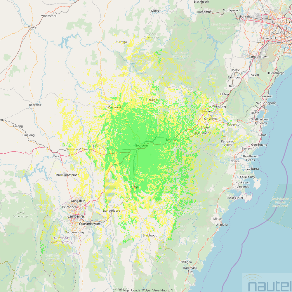 This is the 35KW 2GN Directional service, directed at bearings 115-145, 190-250 and 290-315. The full 35KW of power is aimed at Braidwood, Canberra and Crookwell only.