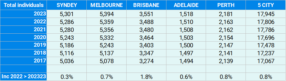 ○ +3,000 in Sydney; +1,000 in Brisbane; +1,000 in Perth