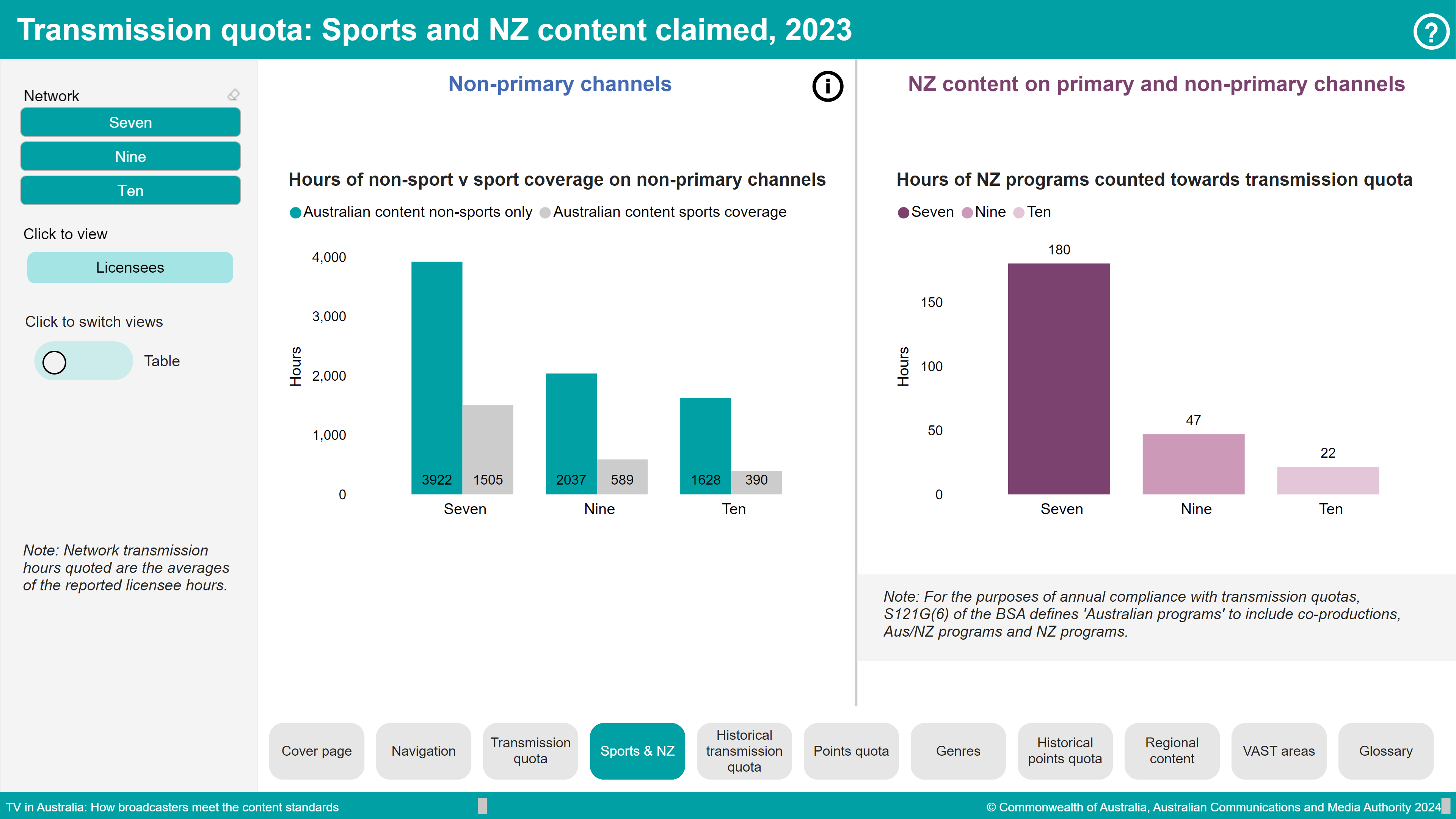 - 1,460 hours of Australian content between 6am and midnight on non-primary channels.
