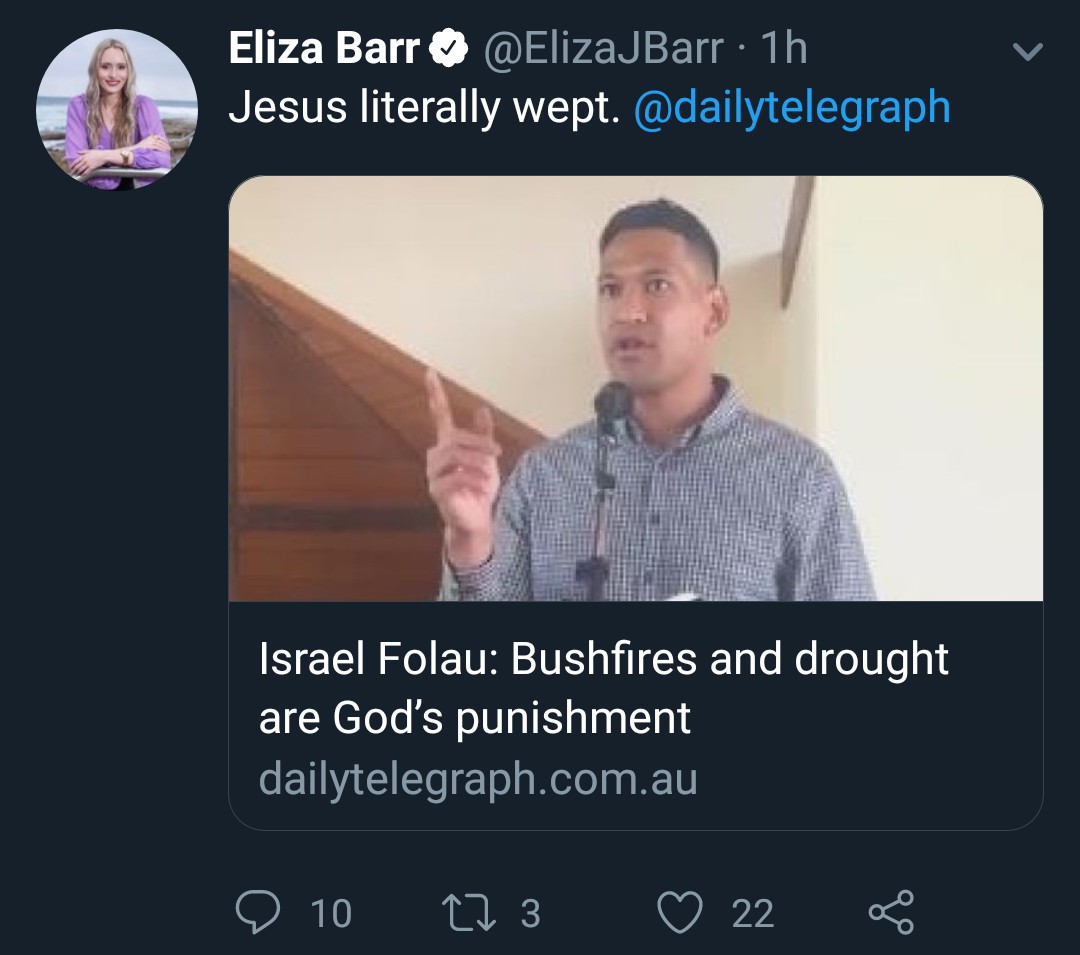Israel Folau has taken over the Rev Fred Nile’s old job, it seems.