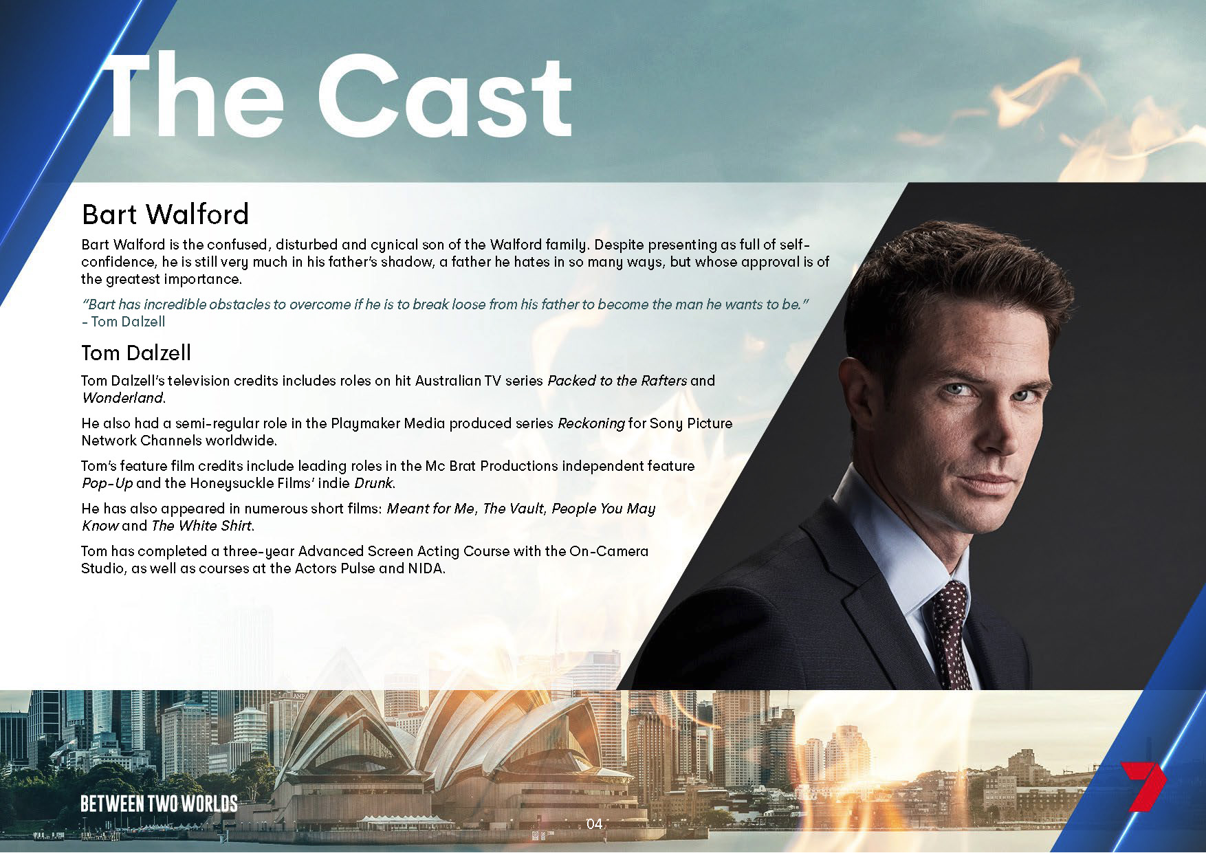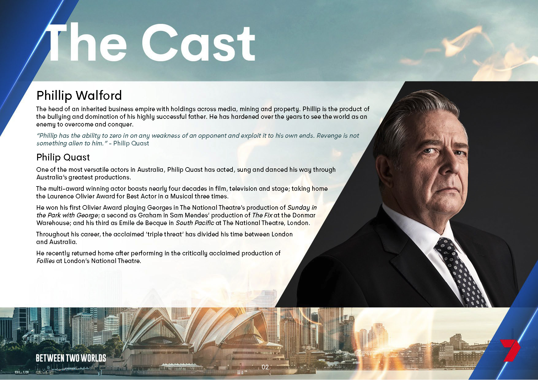 Cate Walford’s (Hermione Norris) marriage to vicious business tycoon husband Phillip Walford (Philip Quast) is on the rocks and she is trapped in a tangled web of lies and manipulation.