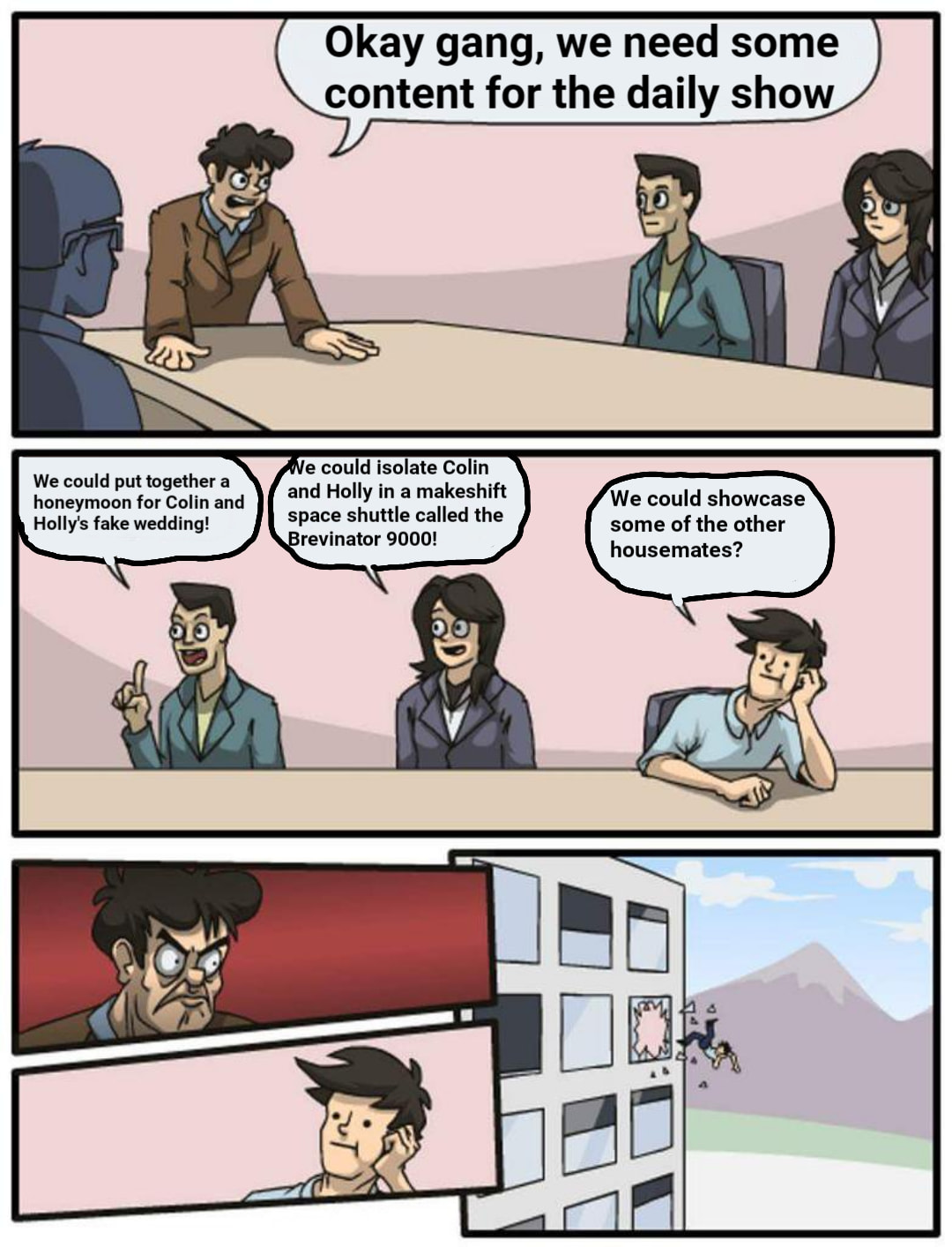 I hate all the Holly/Colin shit too but ‘love affairs’ did feature on original BB seasons. The most famous being Marty and Jess who ended up getting married. Then we had Hotdogs and Vesna and many others. I think this one grates because of the two people involved. Would be good if Holly goes on Sunday but I fear it will be Bruce.