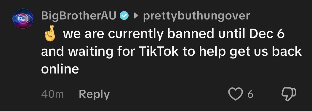 Edit 1:02am AEDT: We have confirmation. Banned until Saturday. Hoping they will get this back up running again. The bio have also changed no longer saying “we are streaming the house”.