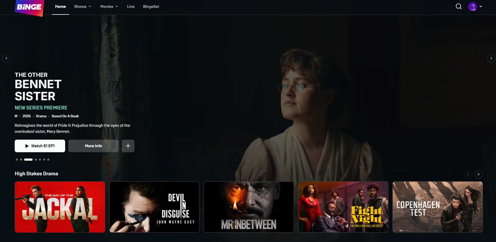 Episodes on Binge & Foxtel On Demand on Monday 23 February. Episodes 3 & 4 on Monday March 2.