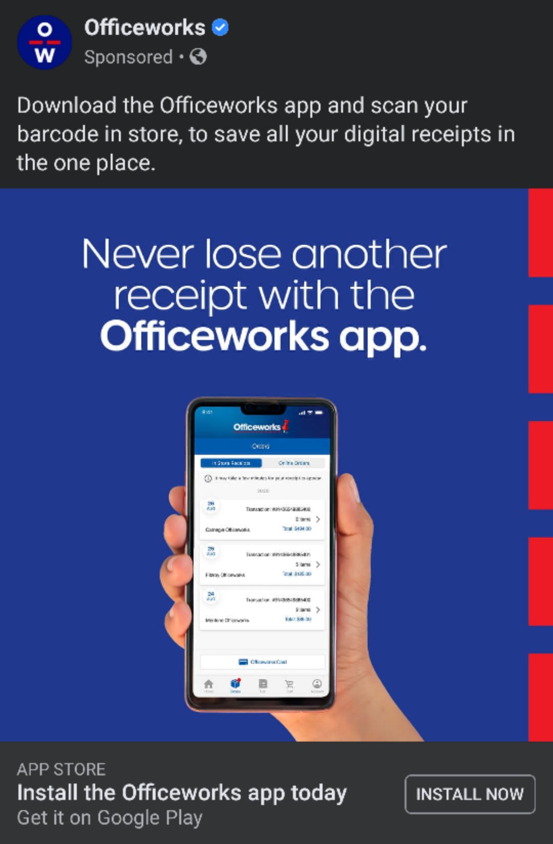 It is an odd acronym, but paired with the darker blue and the red segmented line inbetween the ‘o’ and ‘w’, I feel it’s has some recognisable elements for people to connect the dots to Officeworks. It works well for Social, App, and Website usage, all of which have been updated to the new symbol, similar to the Woolworths abstract ‘W’ symbol. They are also using it standalone as well: