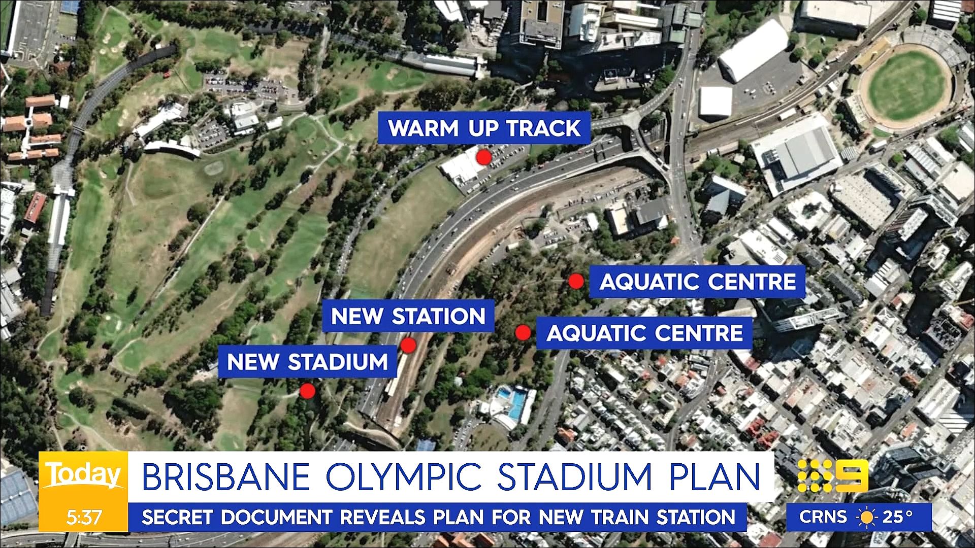 A new Olympic Park train station will be built alongside Brisbane’s 63,000-seat Games stadium at the southern end of Victoria Park, leaked government documents indicate.
