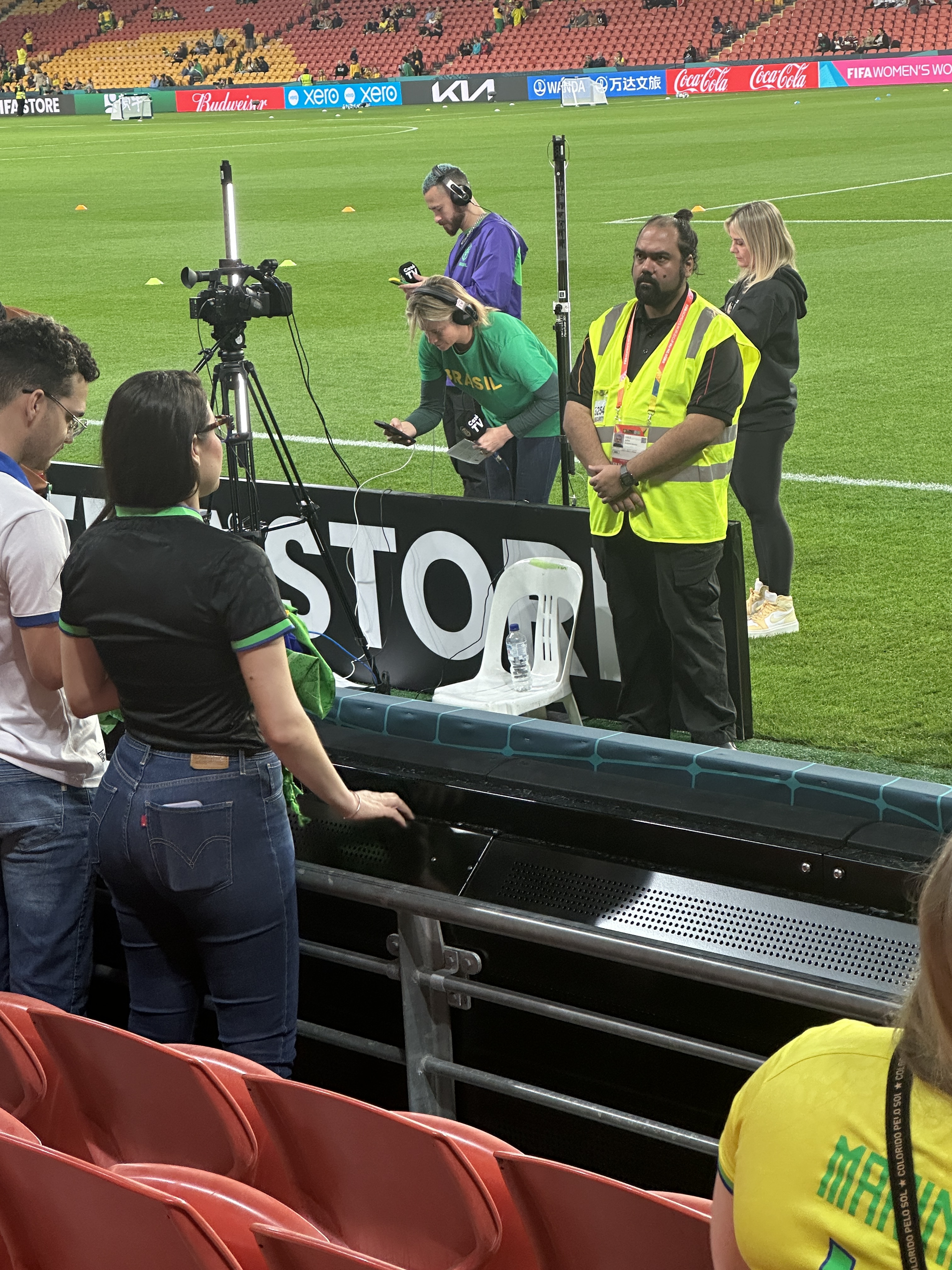 On field setup for Rede Globo Brazil for the France v Brazil game at the women’s World Cup in Brisbane
