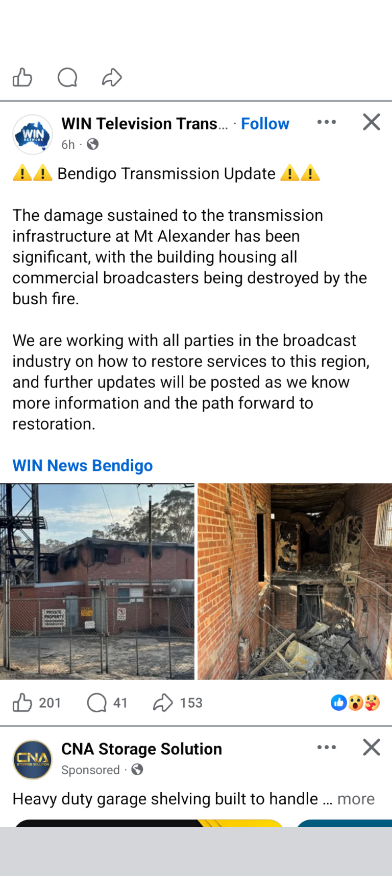 I’ve seen photos of the damage to the Commercial TV site at Mt Alexander. The entire ceiling is burnt out and I’m not even sure the building itself can be saved. Been there since 1961.